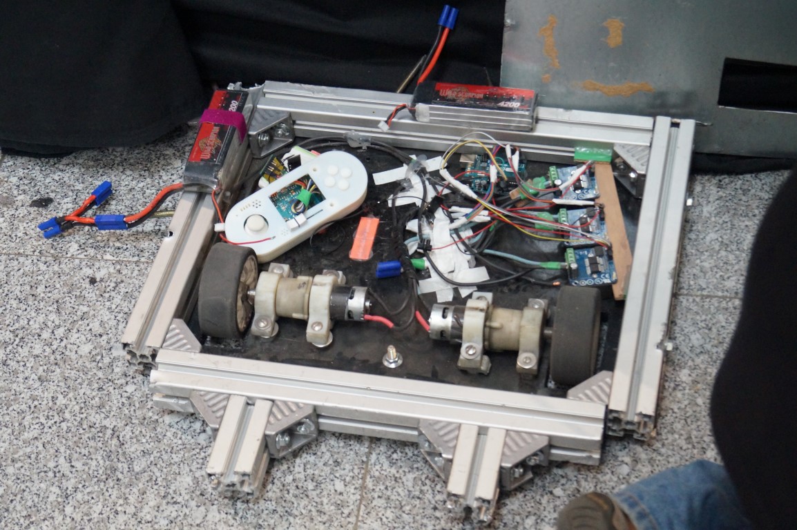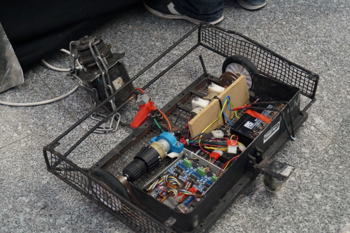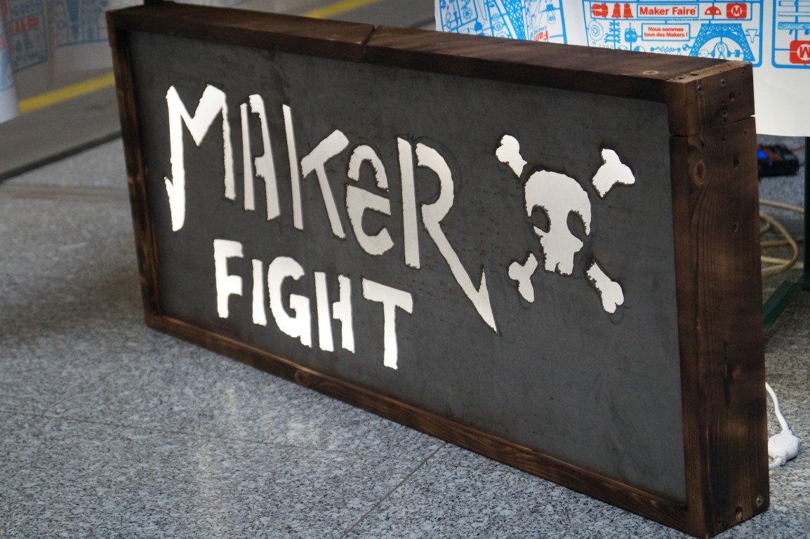 Maker Fight is a group that does robot battling. They set up an arena and were letting people from the crowd drive the bots around. The main weapons were disabled for this event because there isn’t a top on the arena and they didn’t want metal bits flying all over!
