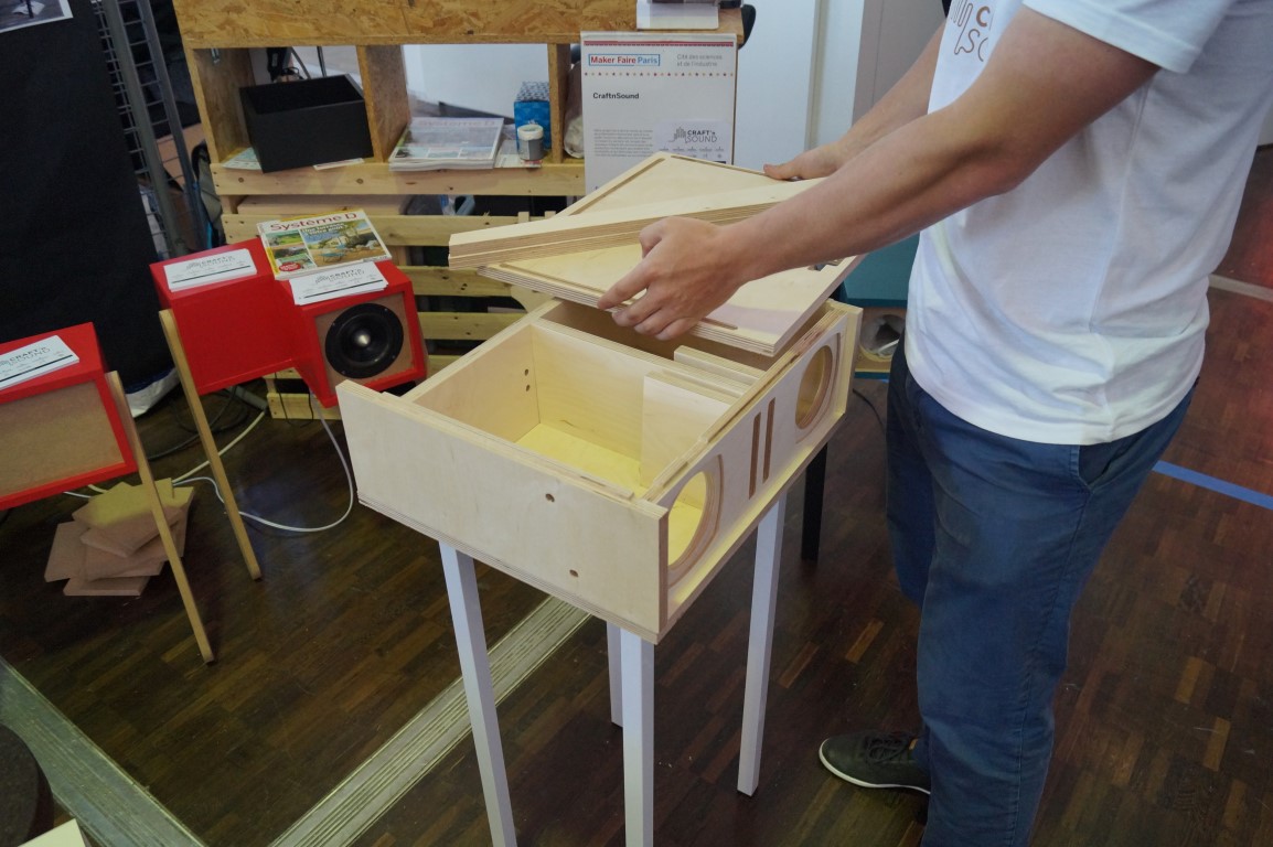 This group, called Craftnsound, has a website where you can design your own furniture speakers. They then cut the parts and send you a kit that you can assemble and paint on your own. Seems like a cool concept. Currently the site has only a few limited options, but they explained that they’re working on making it automatically configure the inside volume of the furniture for optimal acoustics. the site is being developed entirely by just two brothers, so they have much to complete.