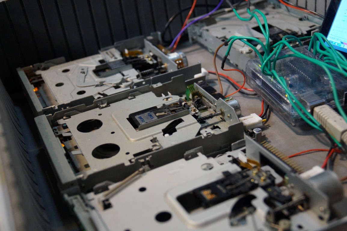 This maker’s entire display fix in this medium sized box. He’s making music using the stepper motors in computer parts.