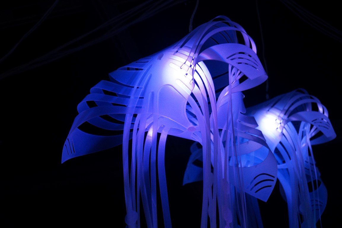 Jellyfish that change colors as you wave your hand over the control box. So beautiful! Sokadesign.fr @MakerFaireParis #mfp17 pic.twitter.com/7cAdvMkqJZ