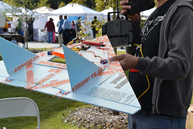 - Breck of [Brooklyn Aerodrome](http://www.brooklynaerodrome.com/) was showing off his Flying Wing Kit ([which we carry](http://www.makershed.com/Brooklyn_Aerodrome_Flying_Wing_Kit_p/msfw1.htm)).