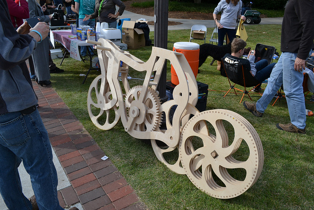 There’s a group called Art120 in Chattanooga that brings down art bikes for an Urban Art Bike Rodeo that lets the attendees ride them around, and they’re always a huge hit. My personal favorite is two bikes welded together with a swingset on top of them. I’m also pumped to have our first Power Racing Series this year. A couple other makers that really get my juices flowing are Mad Housers, which build small houses for the homeless and will be constructing one of their houses over the course of the weekend, and the ever popular Nerdy Derby, which brings a variety of wild supplies and lets participants create unique cars inspired by the Cub Scouts’ Pinewood Derby and race them against others – 600 were made last year at our one day Mini Maker Faire!