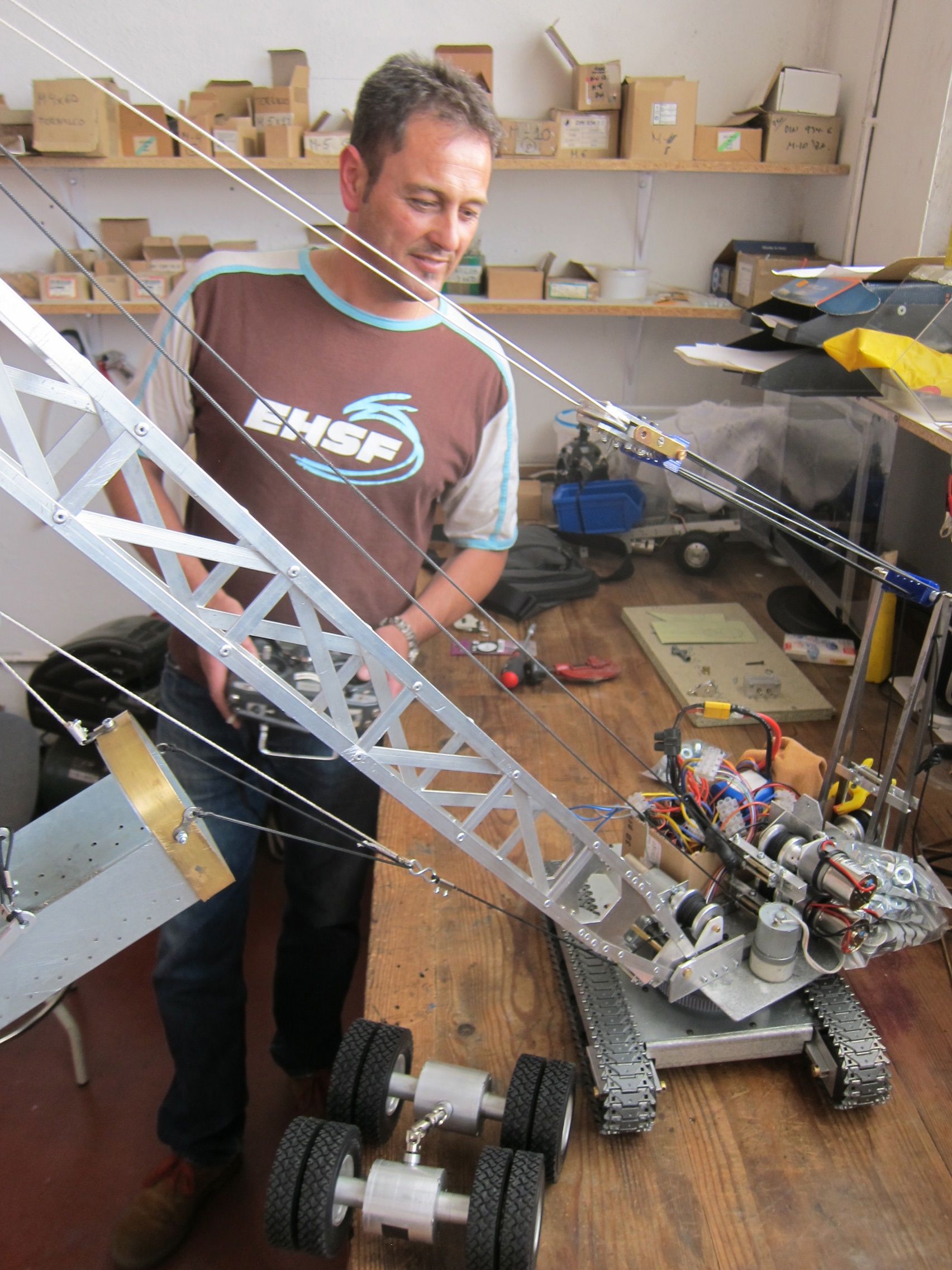 - Rafa Moro Catanedo, ex – mechanic / carpenter, working on his RC crane