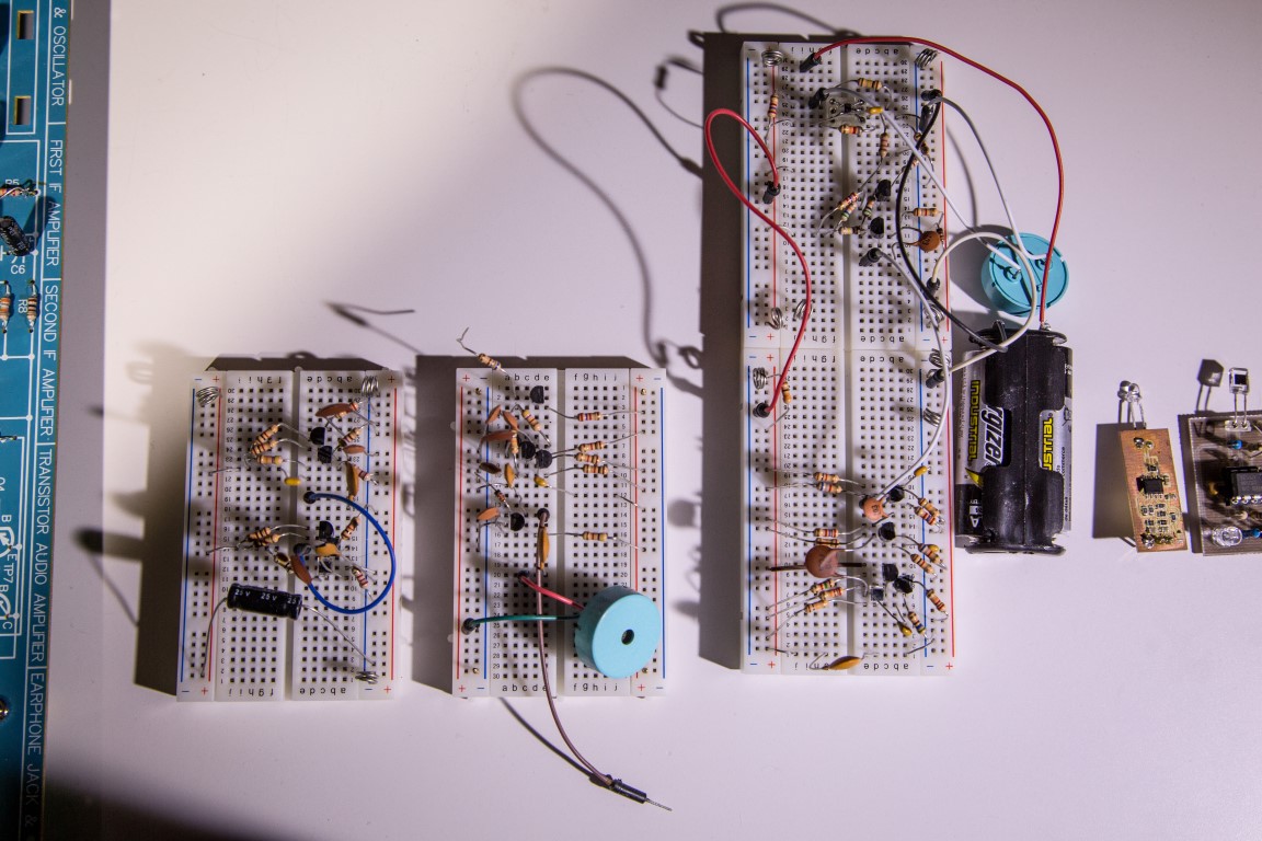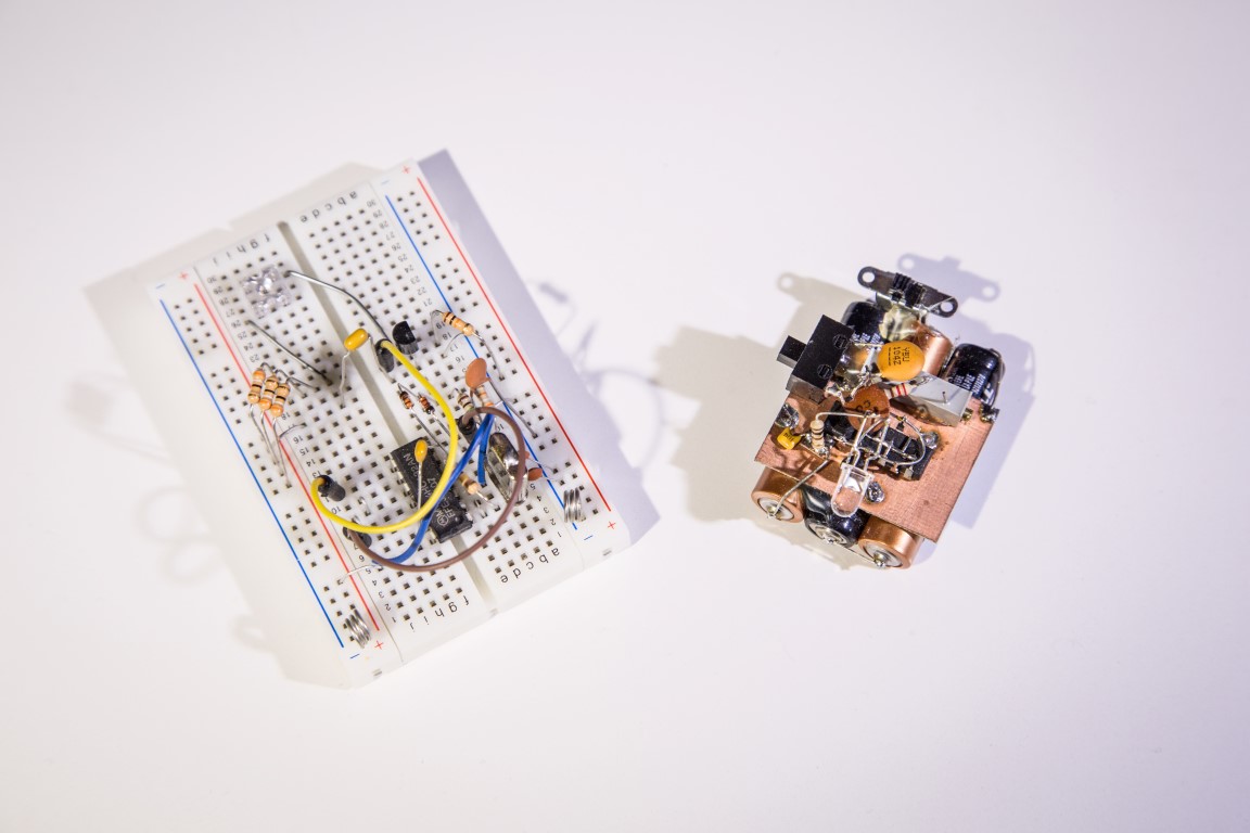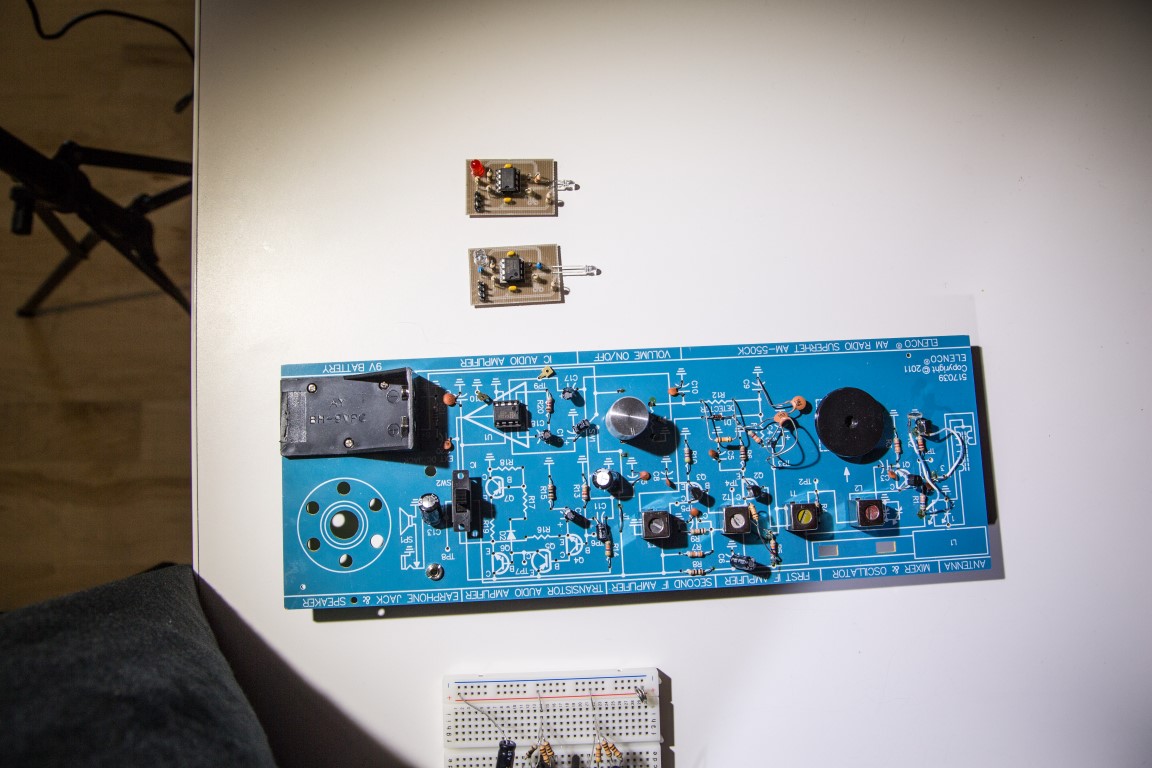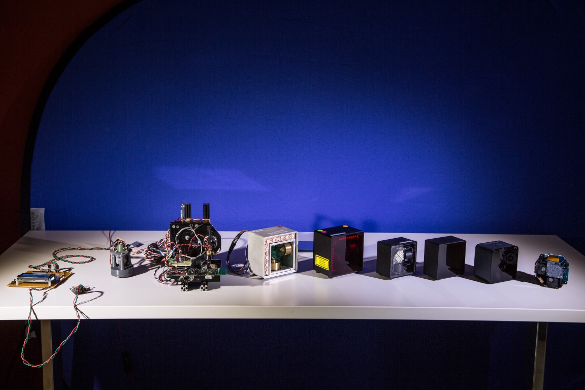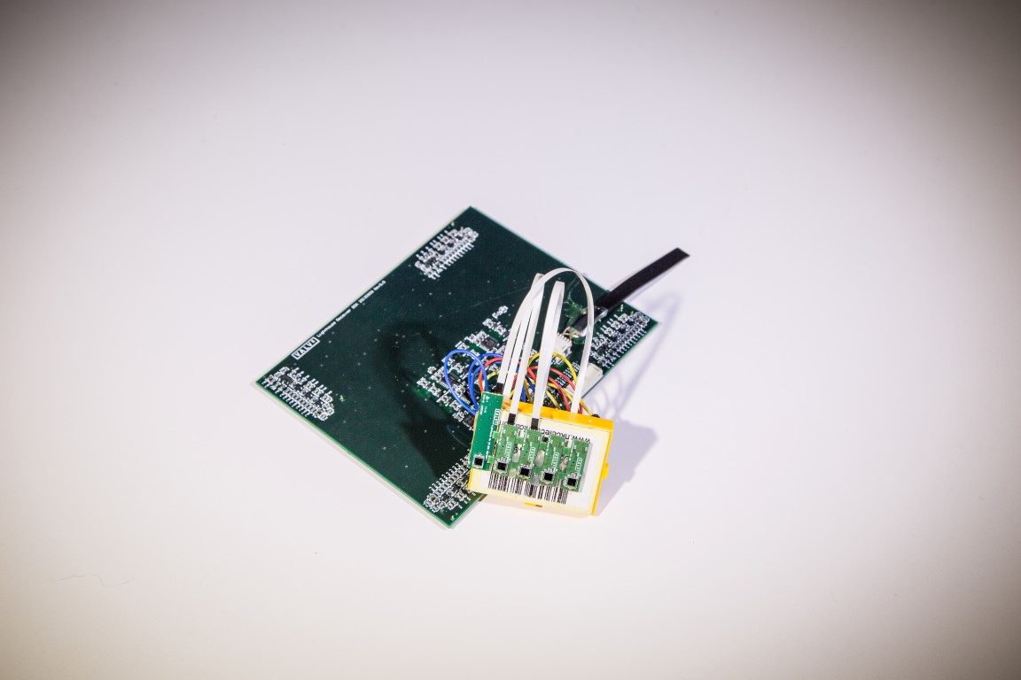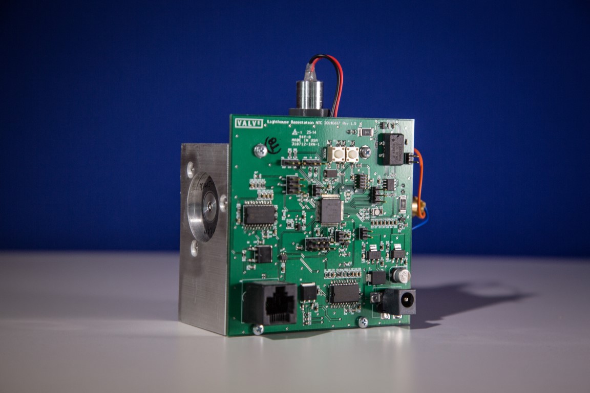 The lighthouse base station sends a fanned-out laser beam across your room over and over. The best way to do this is with a rotating system. This prototype uses a pair of hard drives sawed in half. Hard drive motors are very reliable for long term spinning, and a convenient item to prototype with.
