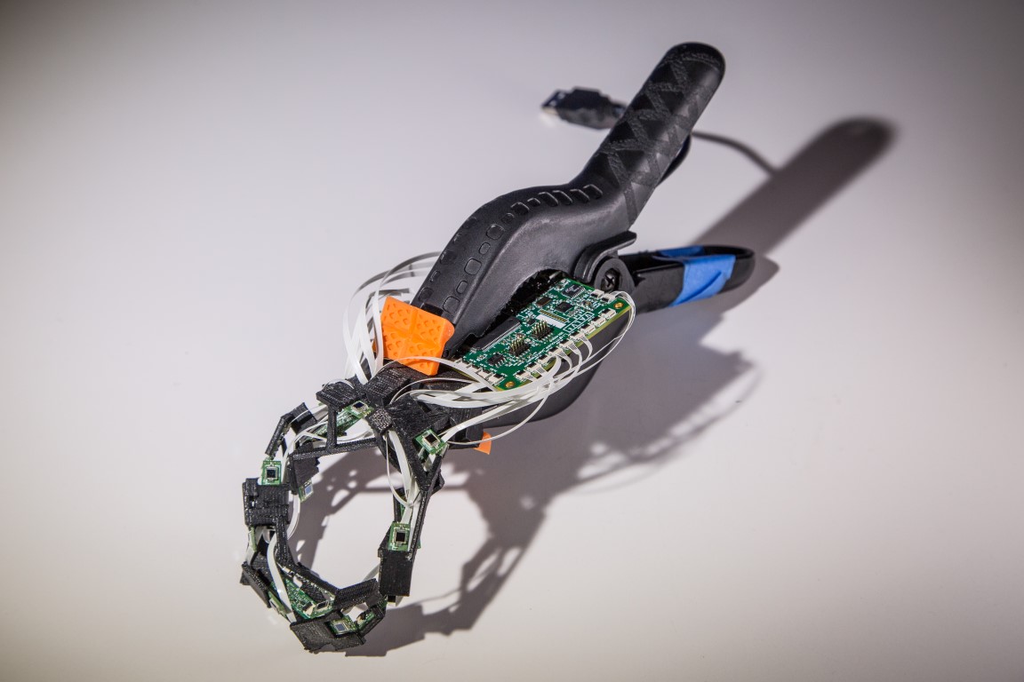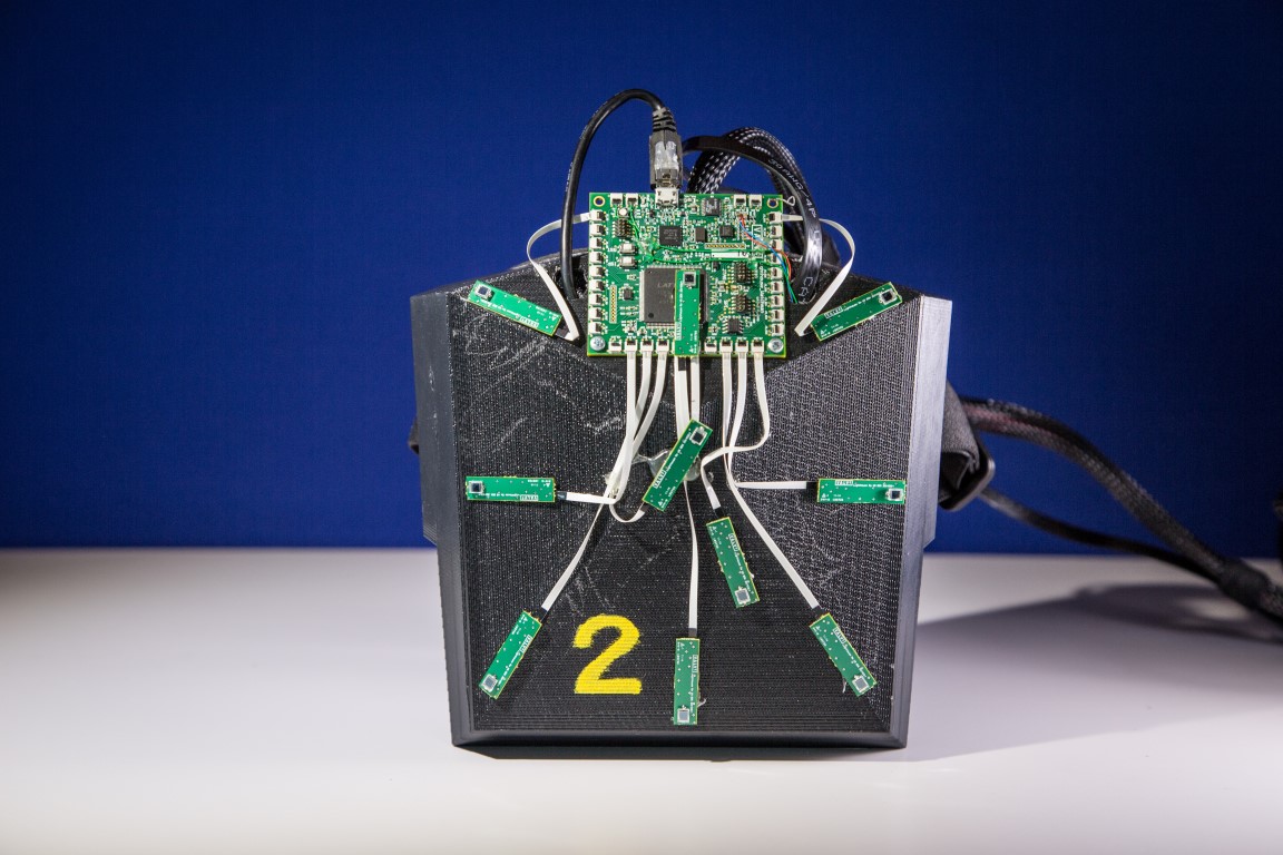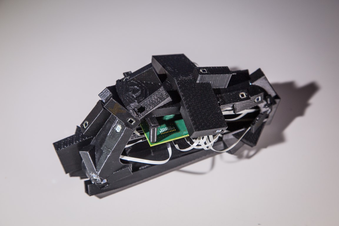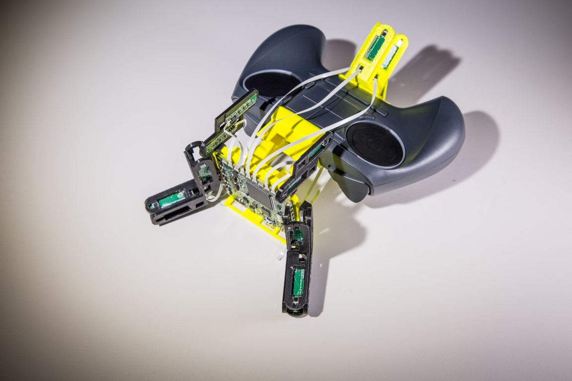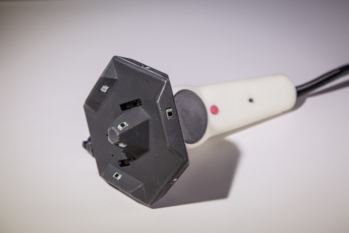 This controller design looked really cool. It turns out that these sensors were all initially placed by hand by Yasser Malaika, guessing where they should go. Later they created an algorithm for optimal placement and found that this prototype was surprisingly well placed for being a guess. This design, while neat looking, was dropped for the current style.