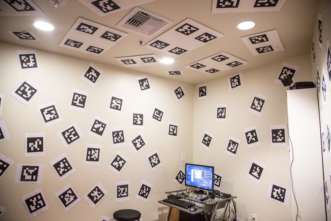 This was probably my favorite part of the facilities. These markers were what were used in the initial VR prototypes for motion tracking. They’re called fiducial markers and they’re more or less randomly generated before being printed and taped to the wall. A camera on your headset (or whatever needs to be tracked) sees these on the walls and uses them to determine its own position. Â It is how Valve did their first VR rooms that allowed you to walk around.