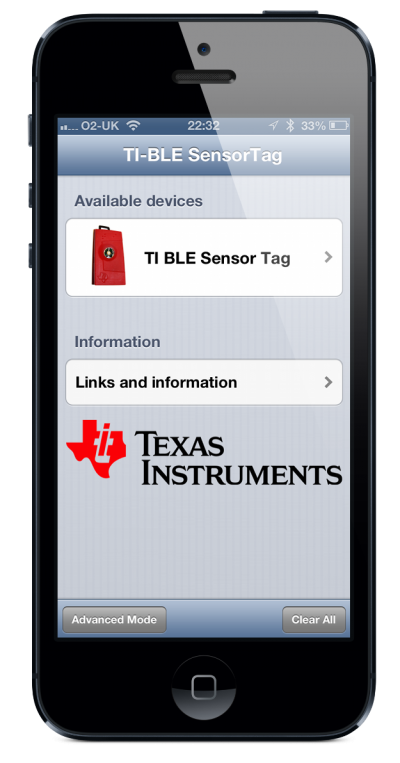 The easiest way to get started with the SensorTag is probably to download TI’s SensorTag application from the iOS App Store. It’s free to download, and is a Universal application for both iPhone and iPad.