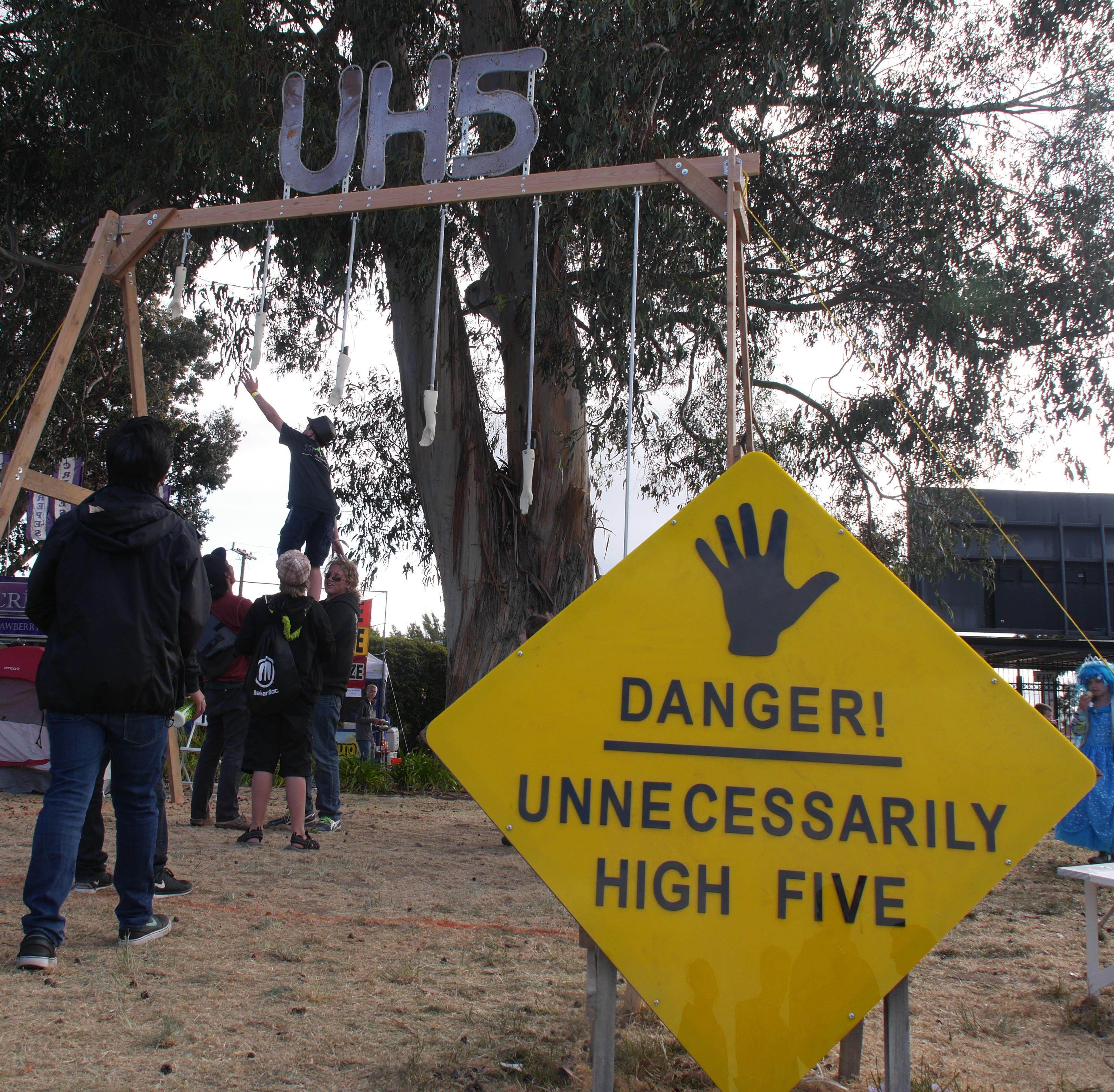 Jason Haber of the Irresponsible Dads of Alameda has put together an interactive art piece called Unnecessarily High Five. The inspiration for the piece came from the seemingly-irresistible need for people to give high fives.