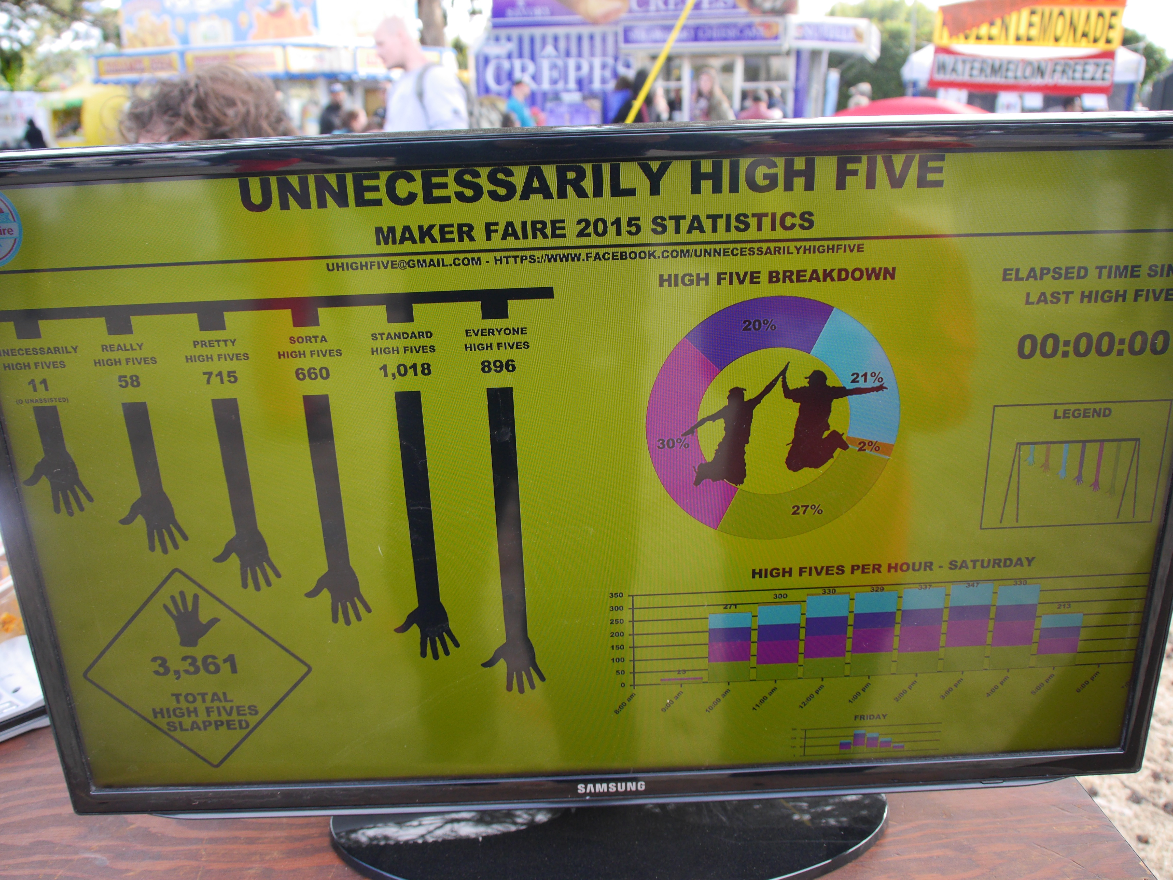 This year at Maker Faire, there are a couple of tweaks. The palms of the mannequin arms have LightBlue Bean sensors to track the number of high fives given out. The team has even built a website that gives the crowd up-to-date tracking on the recorded number of high fives in each position. Another addition is an extra low hand nicknamed Arm Zero. This hand gives all high fivers the opportunity to participate. Check out more high-five action at their Facebook page.