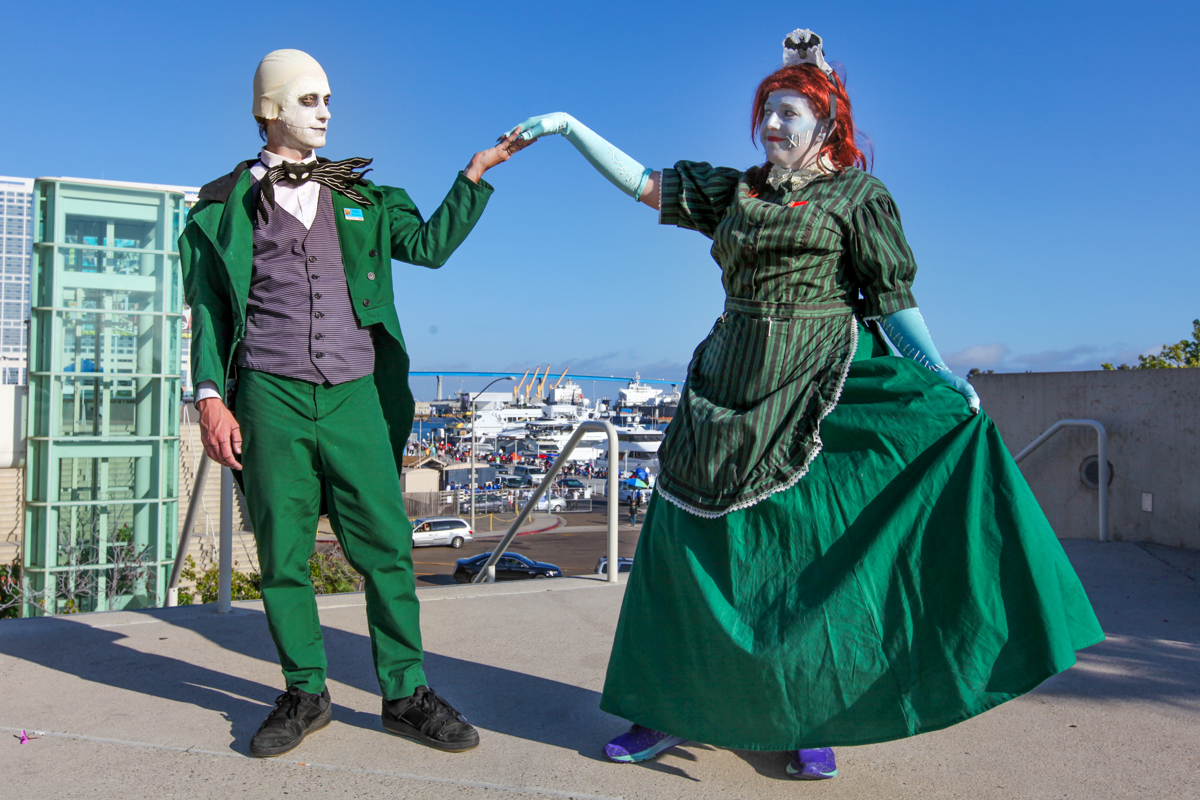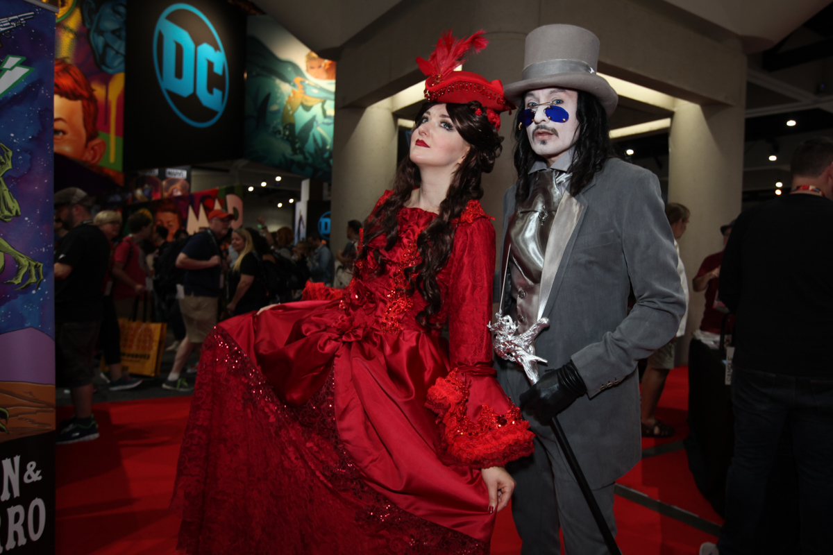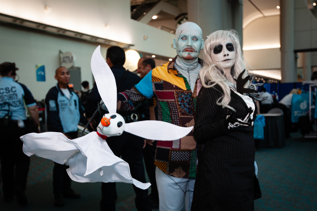These days, Comic-Con sells out to 130,000 fans, filling the 2,600,000 sq. ft. convention center, as well as many of the surrounding hotels. A significant portion of restaurants, event spaces, and parking lots around downtown San Diego are rented out to movie studios for off-site activations. Despite the daytime heat, there were tons of amazing cosplays, many people dressing as a different character for four days. I shot a group of Hatters who were largely in character, and the Masquerade, which had giant robots, intricate dresses, and molded armor.