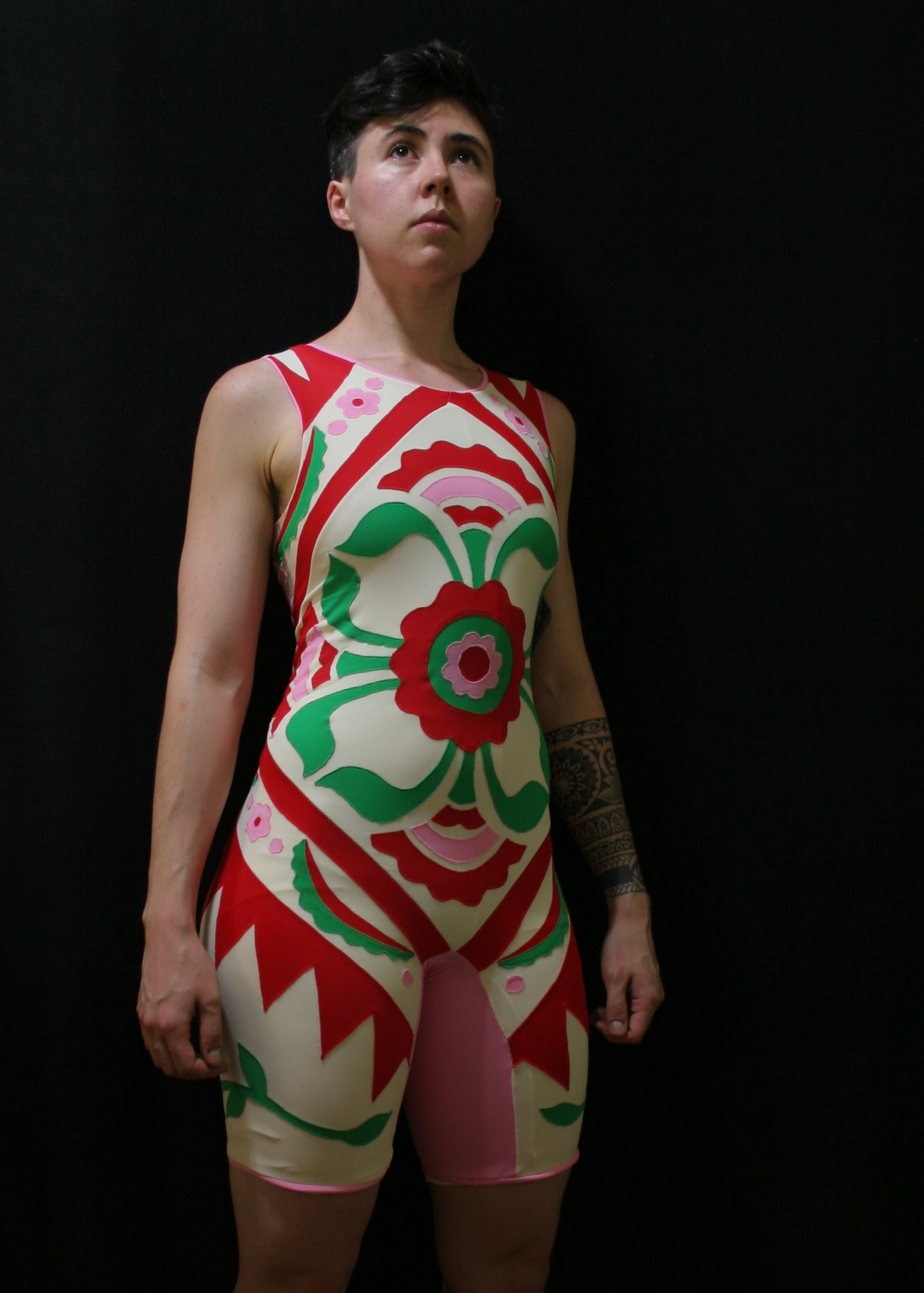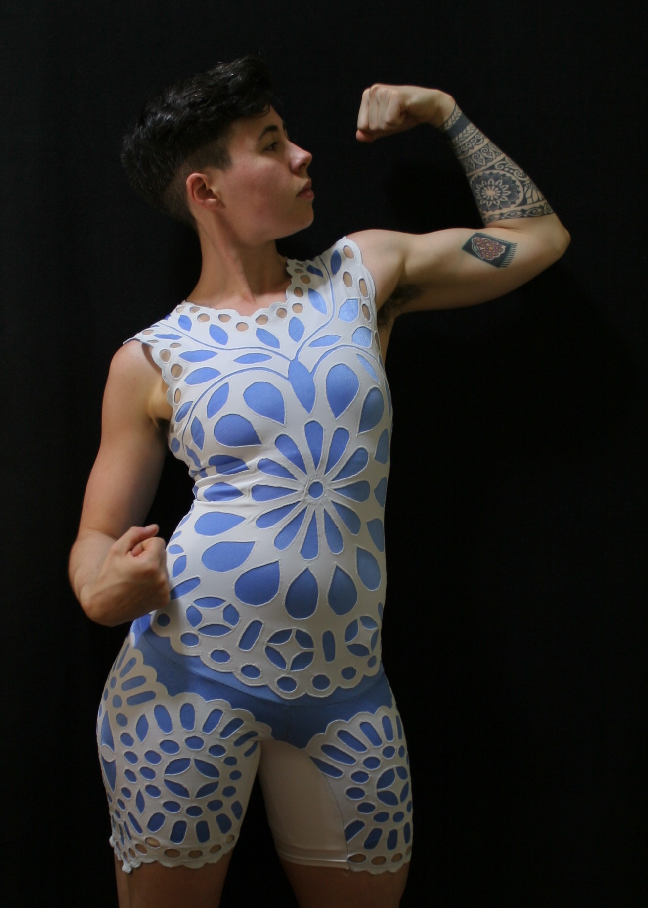A good example of this is their work creating sports singlets inspired by sewing crafts such as broderie anglaise. In addition to creating their own designs, Rega has an interest in cosplay. “I’ve been recently fixated on making outfits based on JoJo’s Bizarre Adventure because the author (Hirohiko Araki) is obsessed with high fashion, and the translation/interpretation from real garment [to a] drawing [back to a] real garment is interesting to me. Not to mention each one has been a really satisfying challenge in terms of patterning and fabrication.”