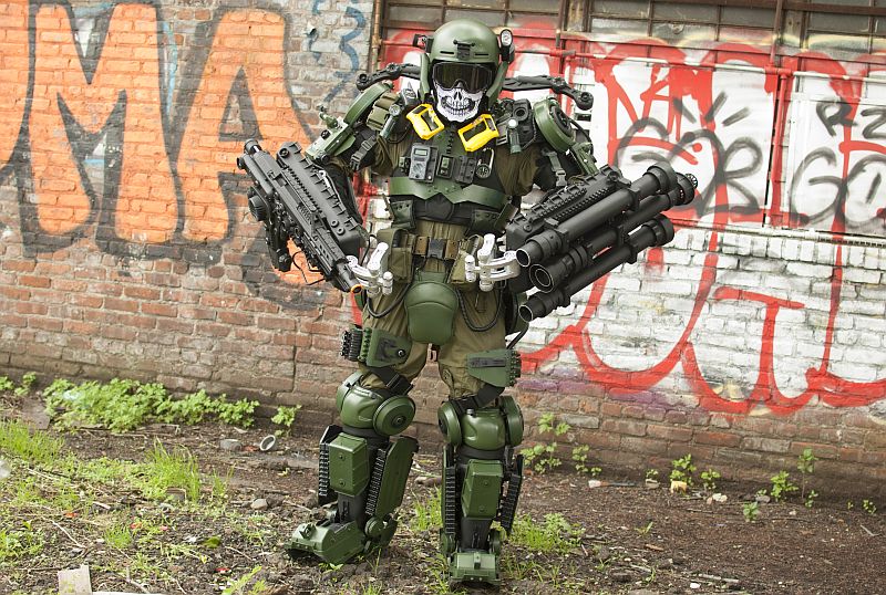 It looks incredible, as though it walked right out of the movie. While it looks like it could weigh a ton, he says it weighs 150 pounds. Not quite light, but certainly not as impossible to carry as it appears at first. Then a gain, I personally might need an exoskeleton just to be able to lug around 150 lbs all day!