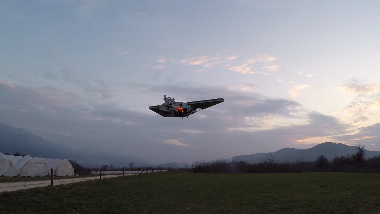 As it glides slowly through the air, the silhouette is nearly perfect. If only he could have it deploy a squadron of mini drones!