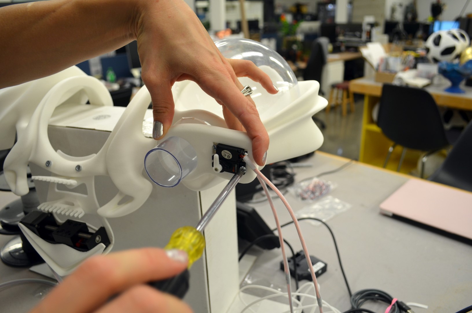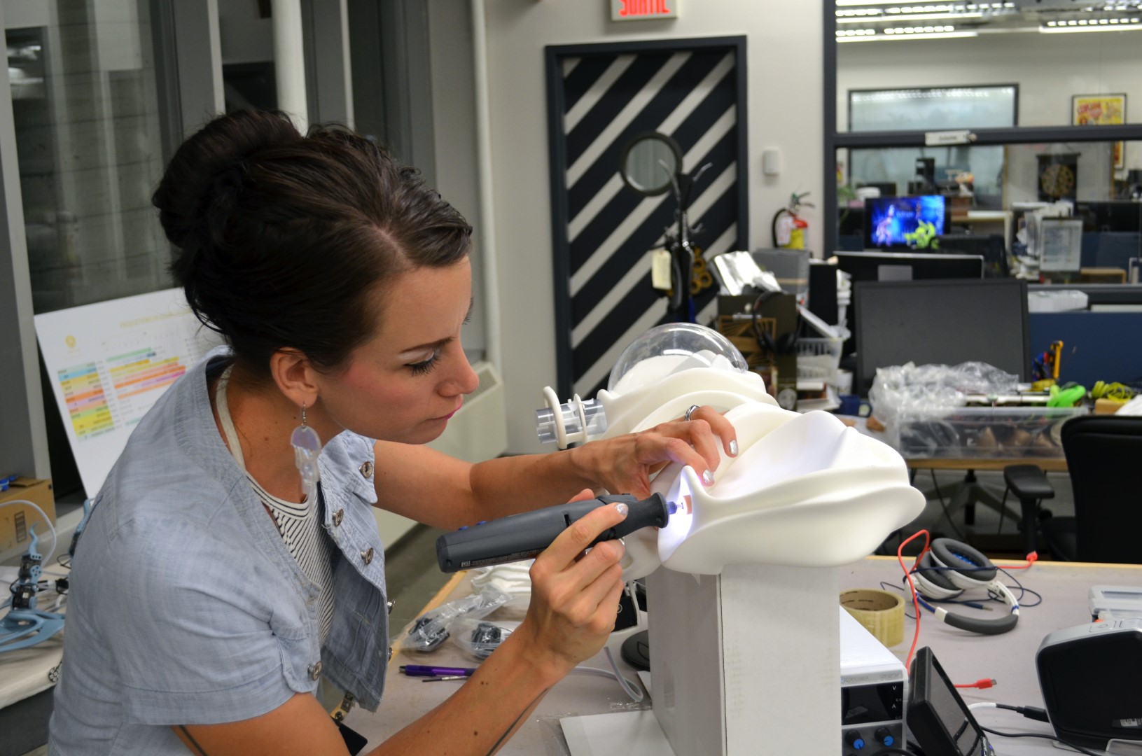 We worked out some of the laser-cut parts at Atelier Numérique: Cirque Du Soleil’s in-house TechHub or ‘FabLab’ within the company, a playground full of machines and techies. Spray painting of the pieces we did in-house in the spray booth and casting department of Cirque, Philippe White (props maker at Cirque) let me work with new cool materials from epoxies to new kinds of car fillers they use to obtain a good coverage on 3d printed parts before they spray paint them. They basically have every Smooth On product you can think of. It’s insane. So jealous.