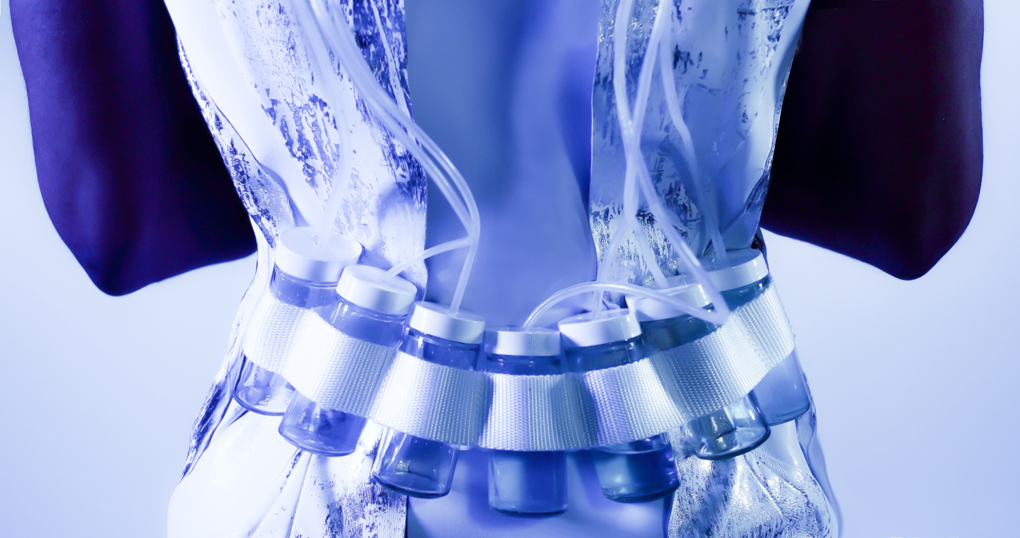 As always I’m trying to create ‘fashiontech marvels’ by which I mean: designs that are interactive, electronic, robotic and in a weird way coming to life on the body. In particular with Cirque Du Soleil and Nextasy – the innovation group within Cirque – and SAP we have been brainstorming ideas around ‘ The Future of Live Entertainment’ in which these robotic dresses and suits really come up to you and start a visual conversation, as they brew perfume or mix cocktails based on who you are: through SAP Qualtrics software we were able to create some surveys to investigate what you might like to drink or smell like. Then it gives you a little mixed present in the form of an elixir or fills a small perfume bottle with a scent that the system thinks belongs to you.