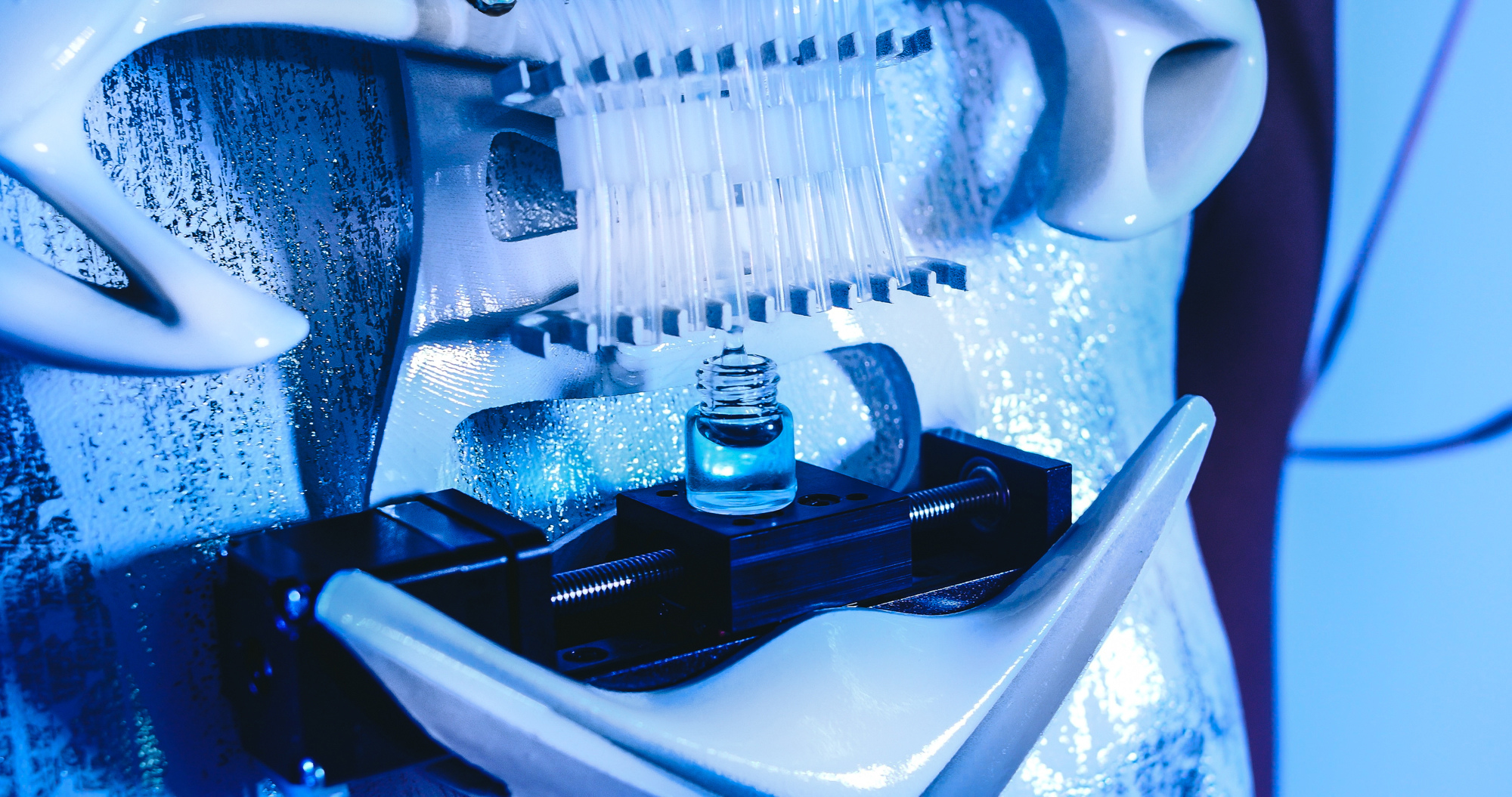 After the questions are answered, the design starts to work. All fashionably hidden, through conveyor belts, pumps and capsules secured by 3D-printed harnesses and accessories, the beverage design blends different alcohols, fruit juices and flavors to craft the perfect drink. While the fragrance design combines different scents creating a personalized fragrance with a custom label delivering a world-class product and brand experience for users.