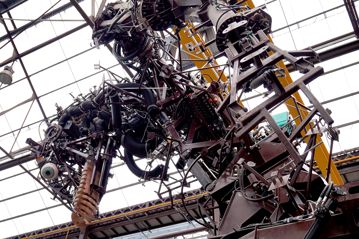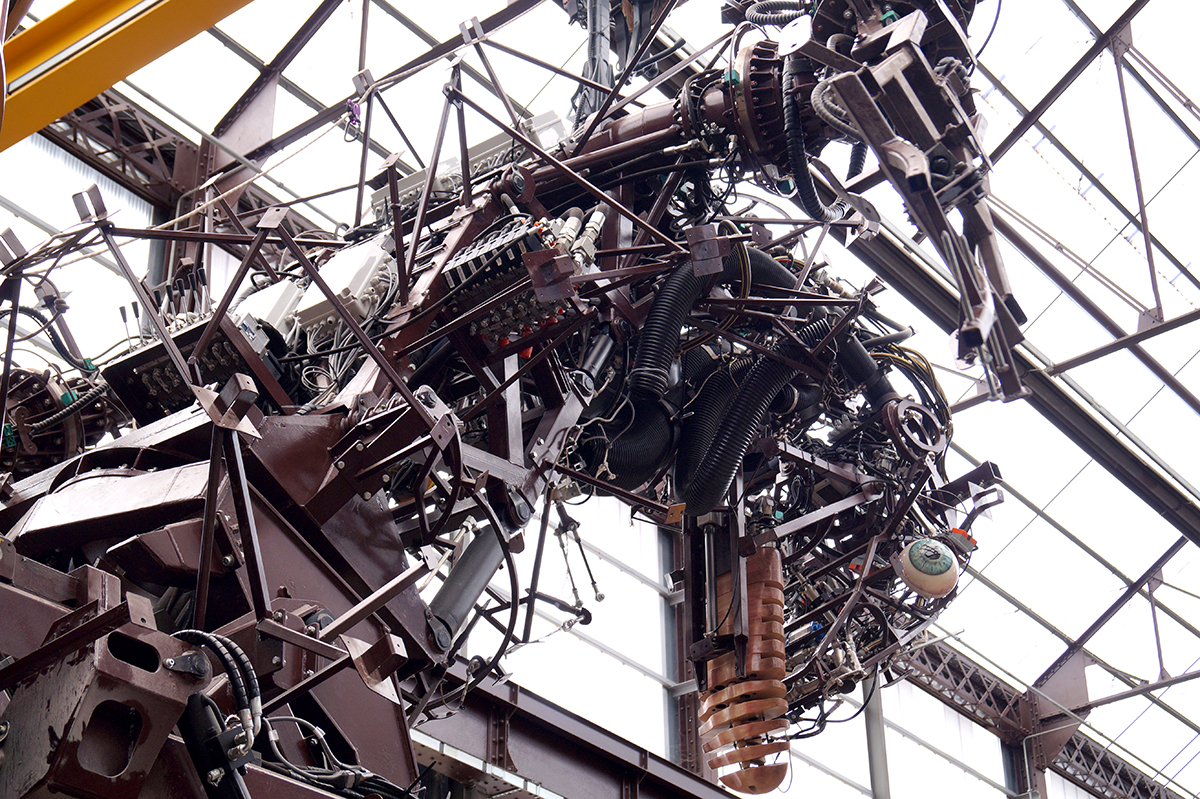 On the day we visited, the majority of the body parts were off of the steel robotic structure. They were being finalized, finished and detailed. This meant that the skeleton of the beast was looming over us that day.