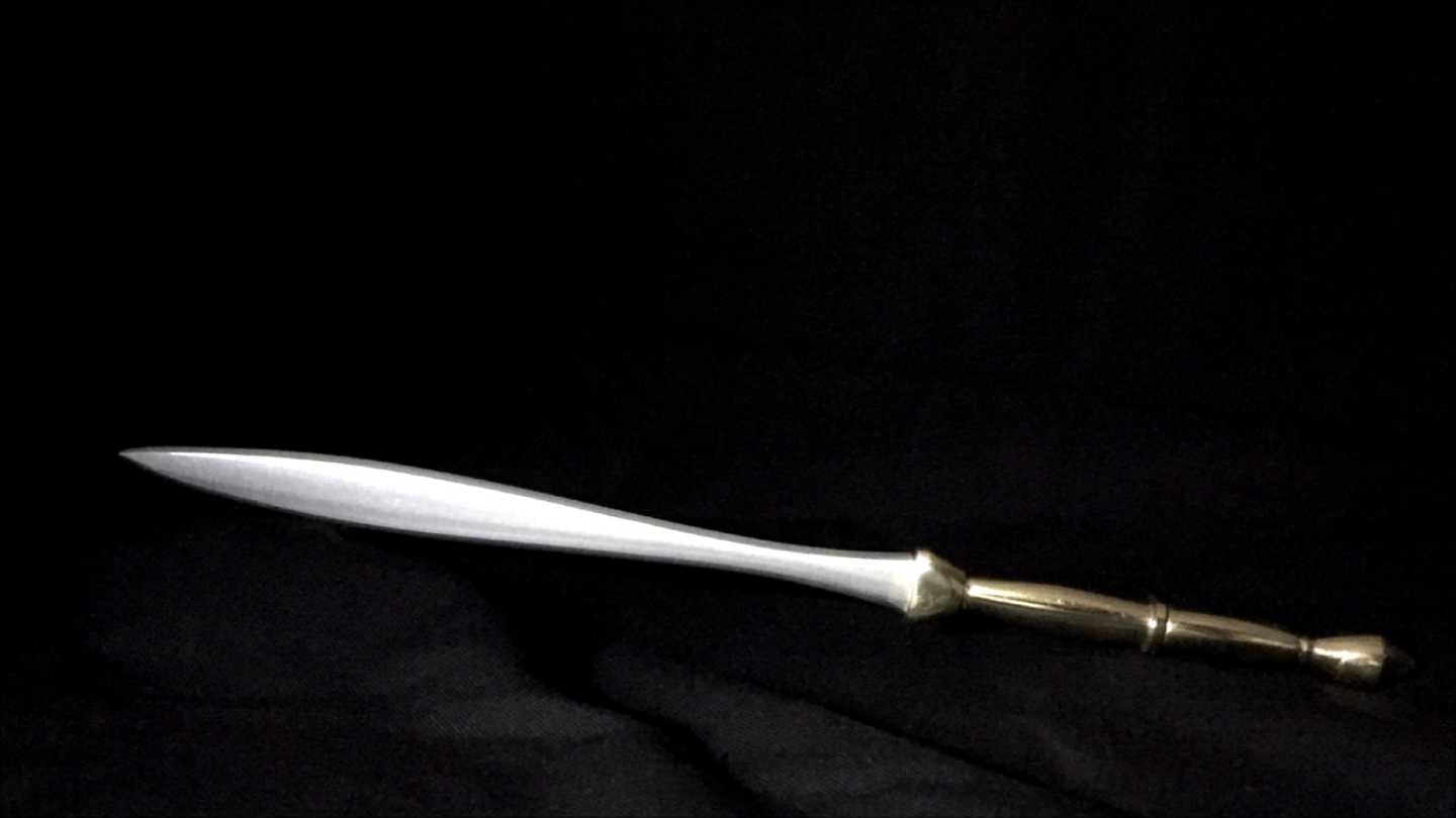 As soon as I saw it I fell in love with the shape and overall aesthetic of the sword. It became a brain worm of sorts. I really wanted to make a leaf sword but don’t have the ability or necessary tools to make an actual sword so I just let the idea marinate… Then one day I was moving the fireplace tools because I had to make some room for something and when I went to grab the handle of one of tools the idea hit me. I could use the fireplace tool handle as the handle for a leaf sword shaped letter opener.”