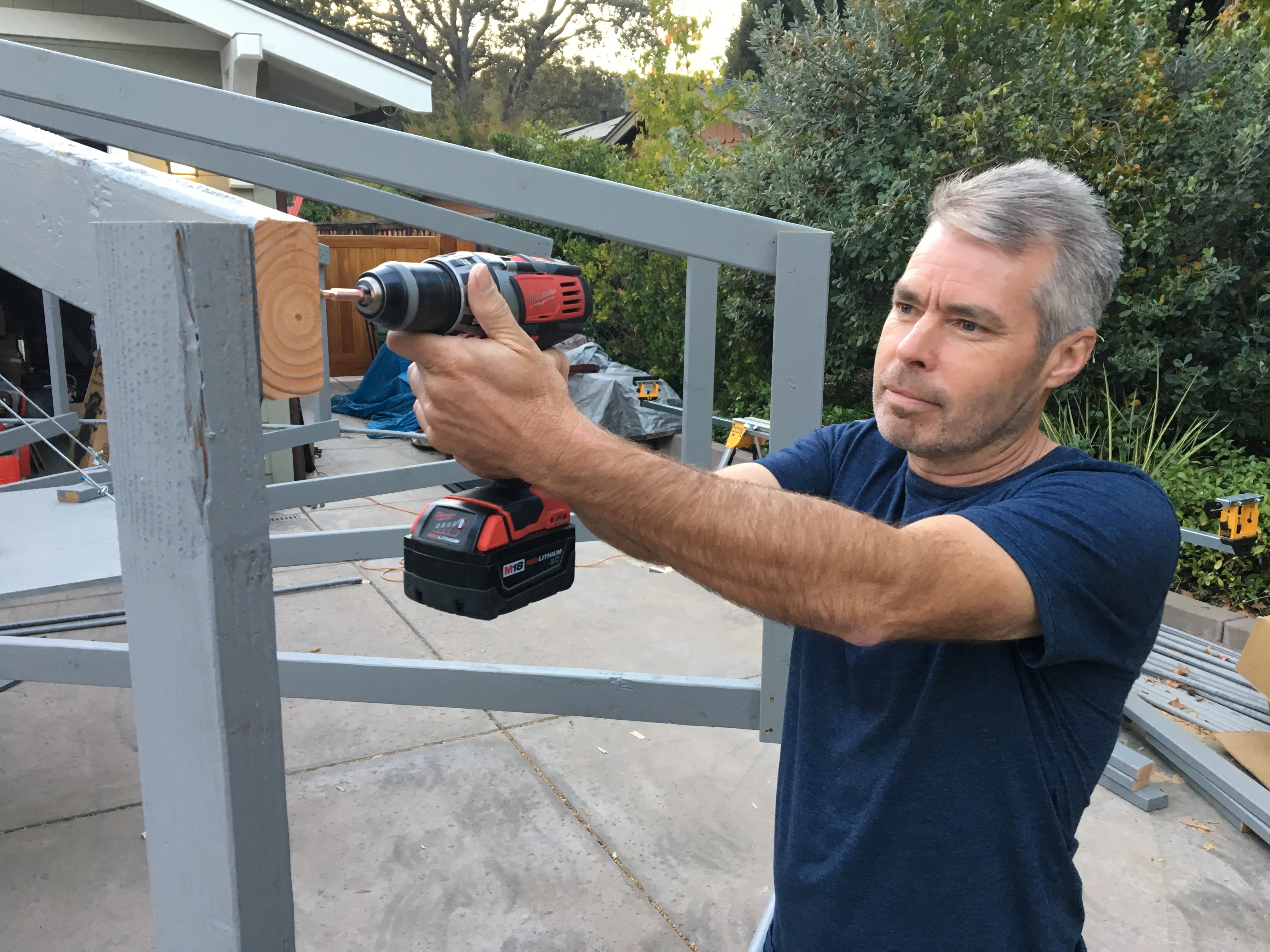 With the initial frame in place, Powell used PVC conduit to complete the circular structure of the Falcon, and build the cockpit. The family also started building the supports using beefy 4×12 timbers.