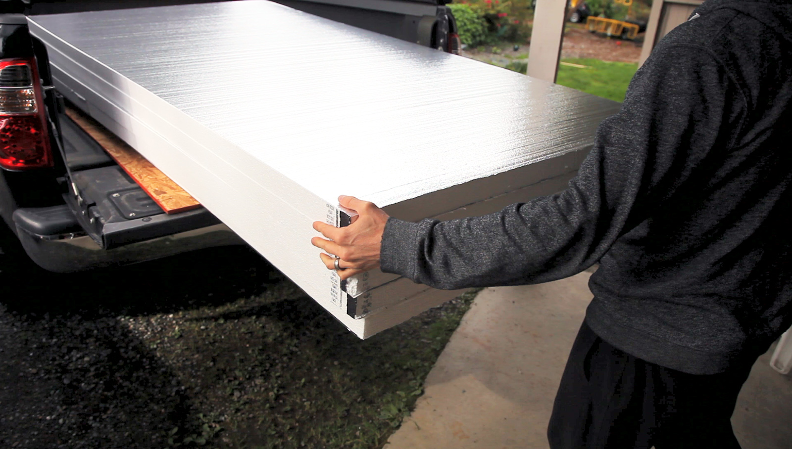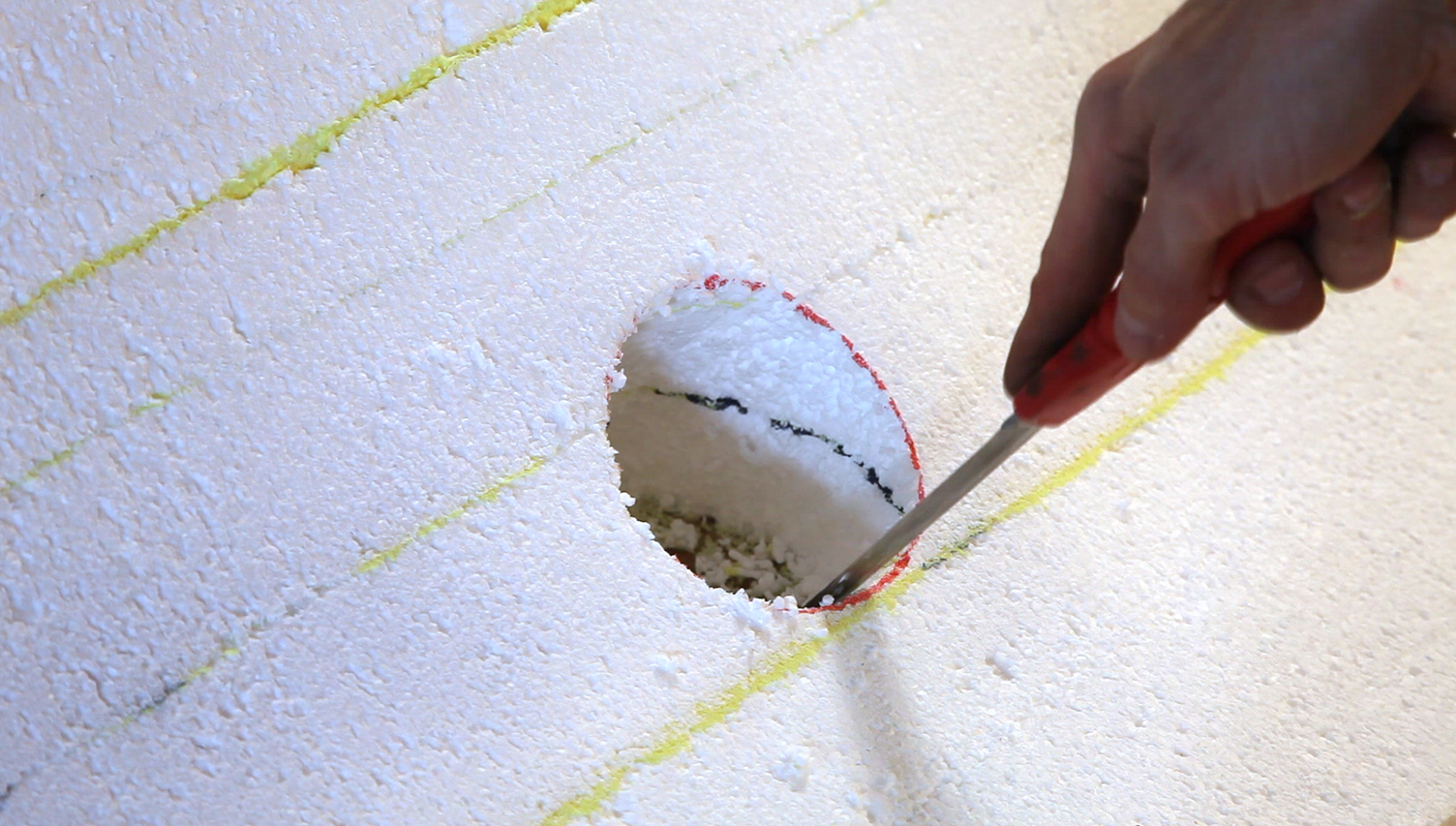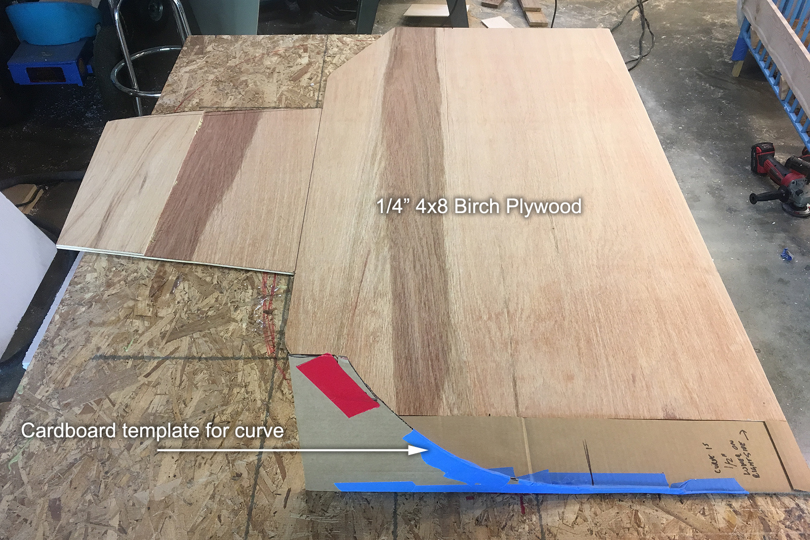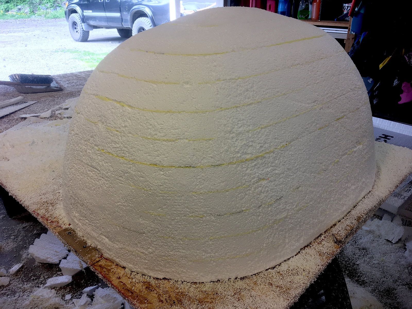 Once things were shaped, he applied blue painter’s tape to the build to further smooth the surface. The other purpose of this tape was to give him a better indication of where the fiberglass would be laid, since it changed the background from white foam to the tape’s blue color. As this was Adams’ first time working with fiberglass, his friend Steve Burnaroos, who has quite a bit of experience working with this material, showed him the basics of this art.