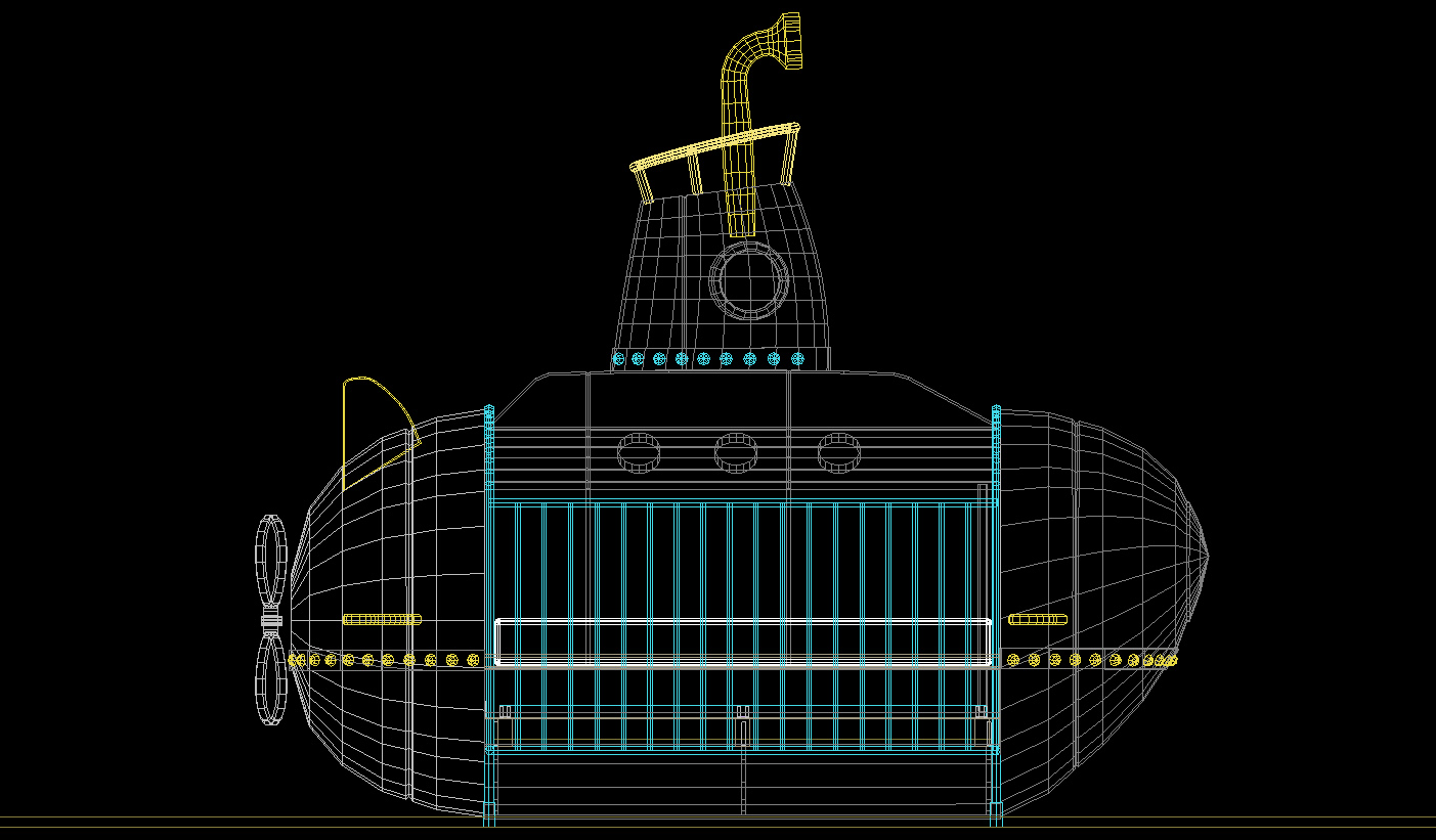 Adams, who works as the World Art Lead for the Destiny video games, started his build by searching the Internet for “cartoony submarines.” He finally chose a blue and yellow model for loose inspiration, and then went to work sketching his ideas out on paper. The sub was then modeled with 3D Studio Max 2016, which allowed him to see how everything would fit together.