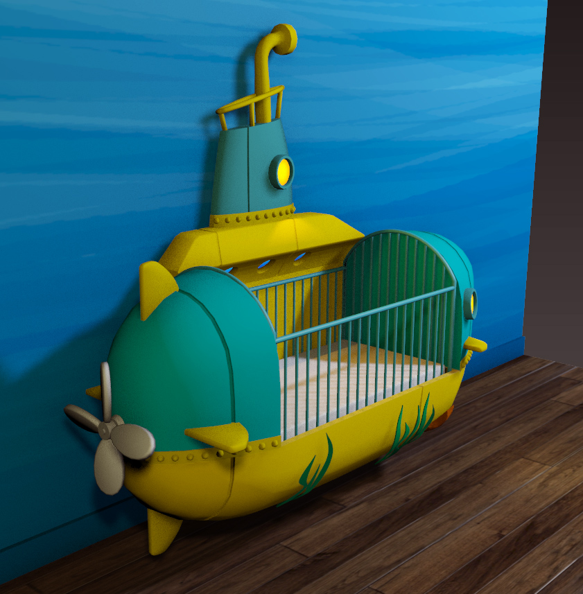 Finally, after adding lights, paint, and assembling everything together, Adams had an excellent submarine for nautically-minded kids! As his children are too old for a crib, he plans to auction it to raise money for Seattle Children’s hospital later this year.