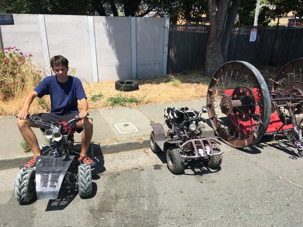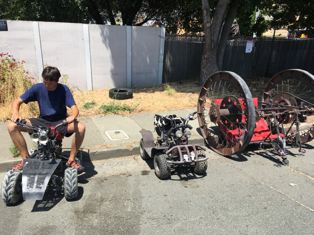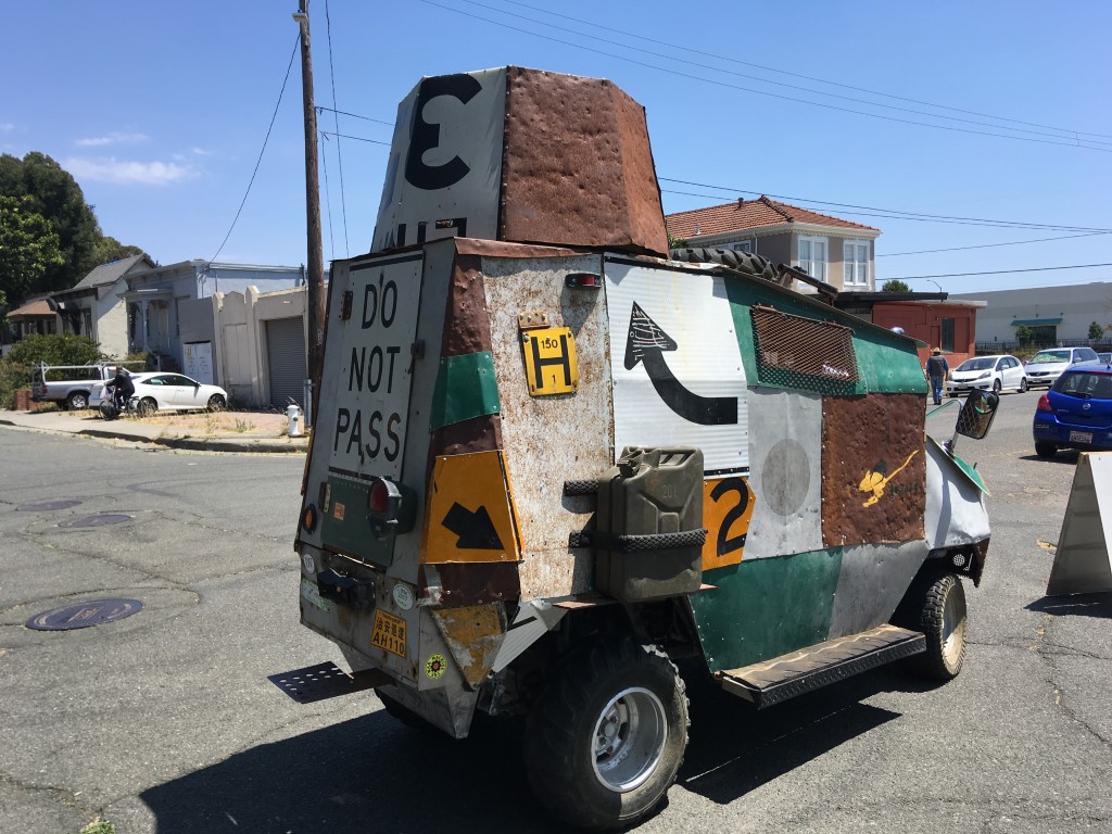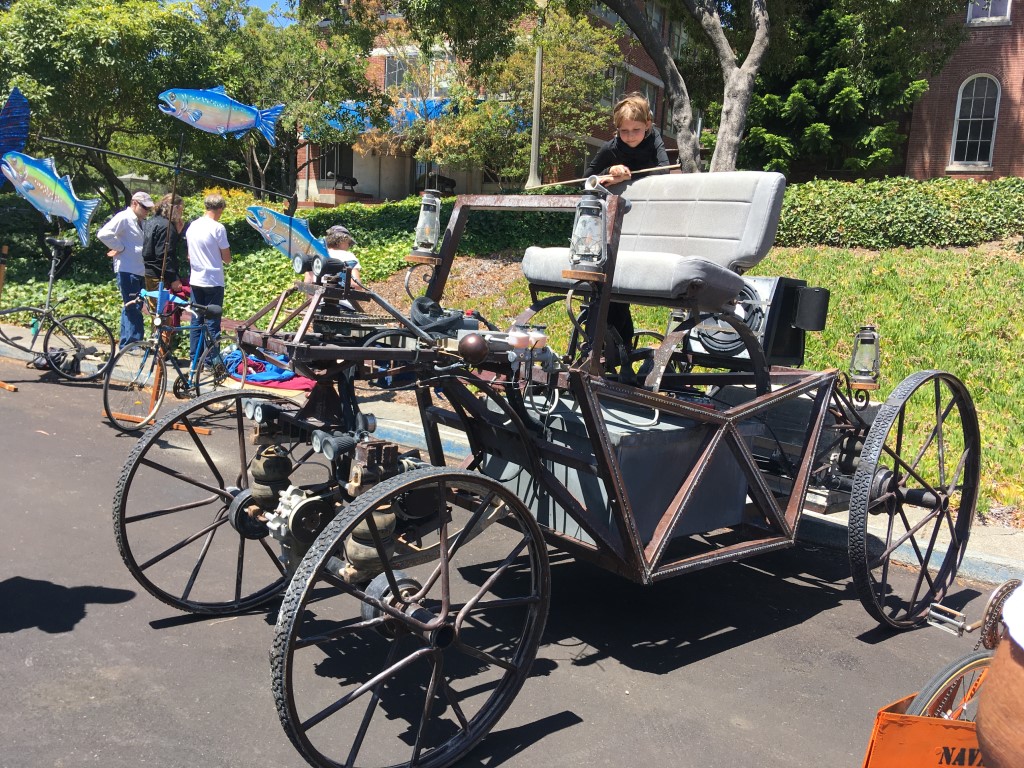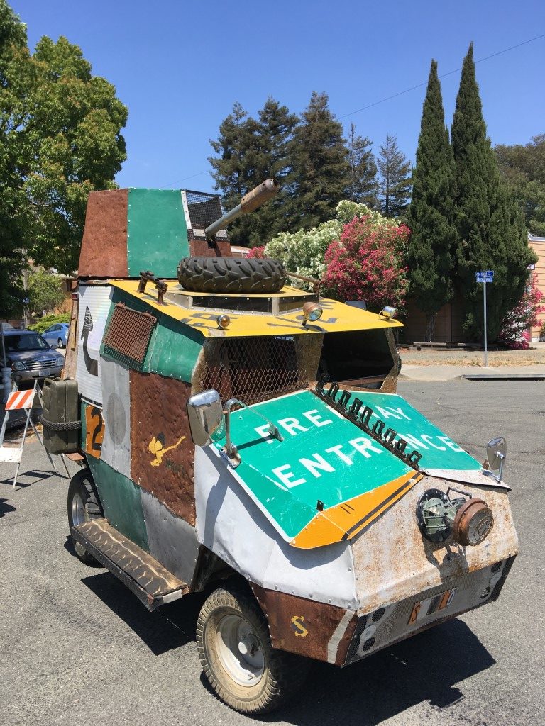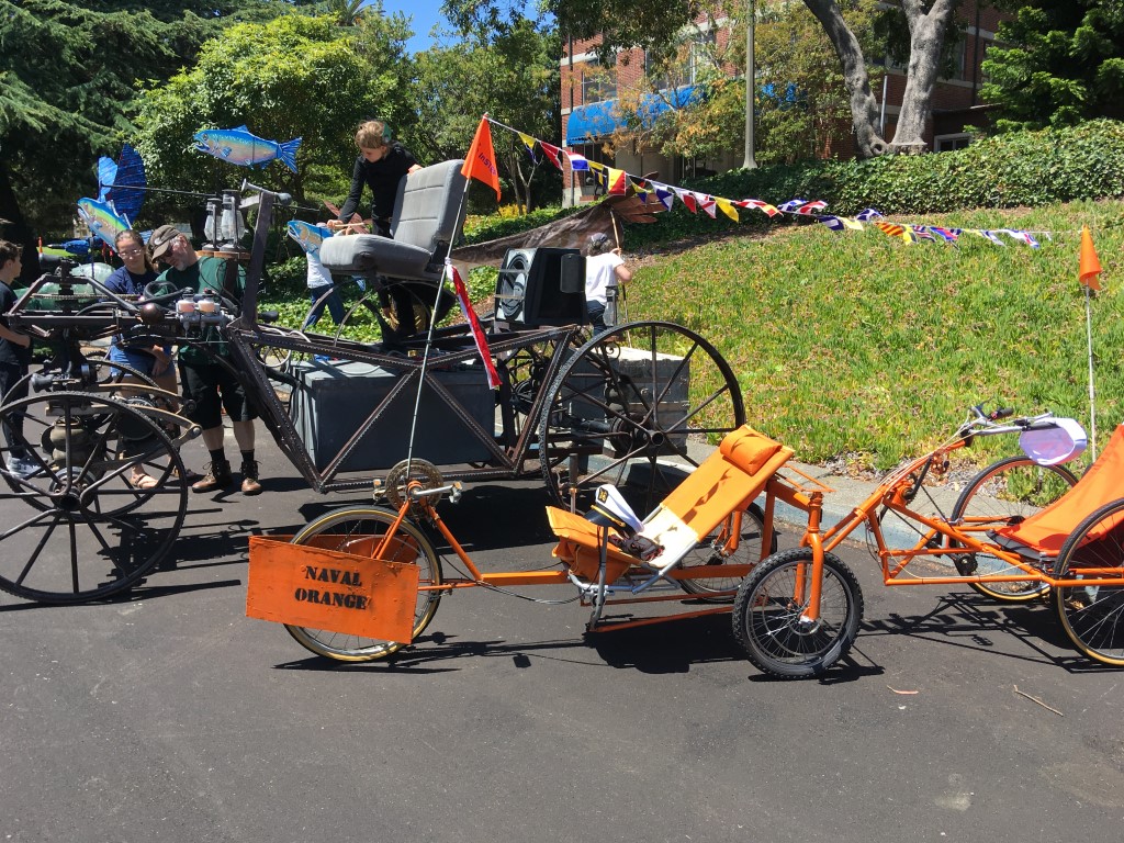 Mare Island is a neighborhood of Vallejo, Ca that was the site of the West Coast’s oldest naval shipyard until the Navy decamped in 1996. The peninsula is now half brand-new tract homes and half industrial ghost town and, once a year, host to the Obtainium Cup Rally. Inspired by the Kinetic Grand Championship in Arcata, CA, the Obtainium Cup Rally bills itself as a “hand-built vehicle rally” but is really an excuse for municipal silliness, an old-fashioned family outing, and a focal point for the local maker community.