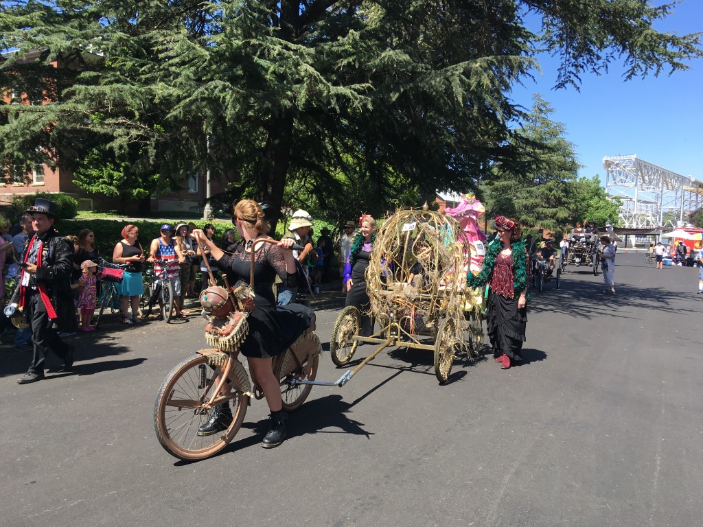 In addition to the Contraptor Rally, the Obtainium crew collaborates closely with the local arts and culture commissions; there is a large and permanent installation from the Flaming Lotus Girls in front of our City Hall; and other local artists organize a monthly Arts Walks. The mayor and the more fun-loving city commissioners and managers attend all the events, often gamely decked out in steampunk gear. The truth is that Vallejo is a hard-knock hometown. But I’m proud to live in a city increasingly powered by makers.