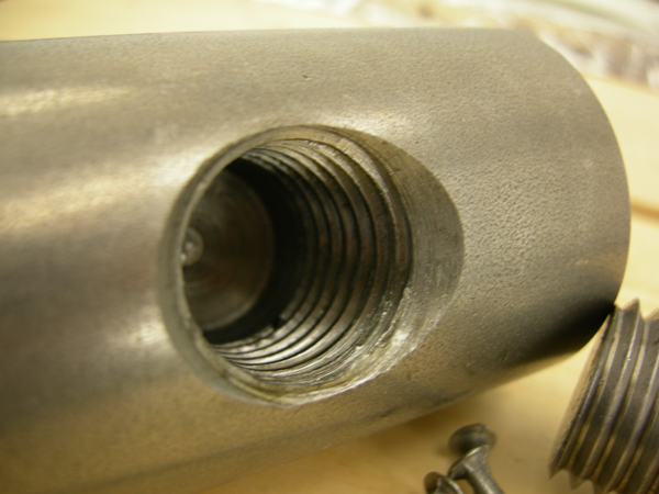 The only section that wasn’t turned in the lathe was the threading in the head. This was hand-tapped: