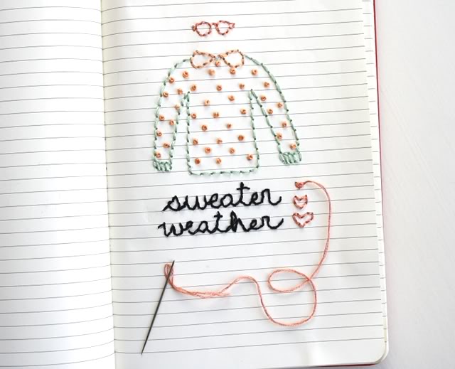 Meredith of One Sheepish Girl is filling her journal with charming doodles that she embroiders onto the pages.