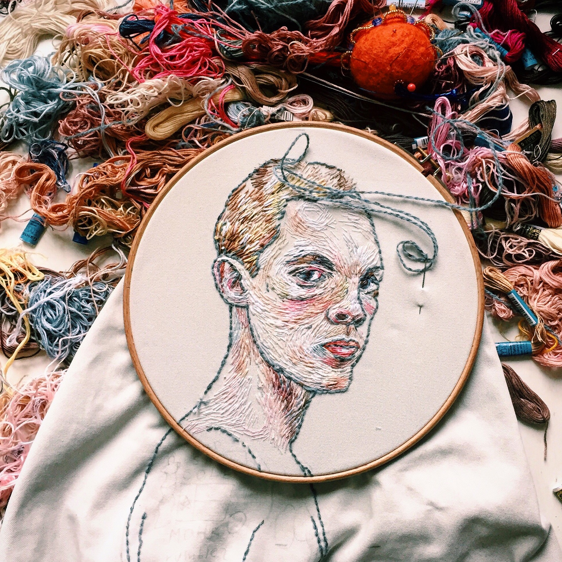 It takes her anywhere from three days to three months to finish her embroideries, which have found homes on everything from high fashion to pillowcases and pullover sweaters.