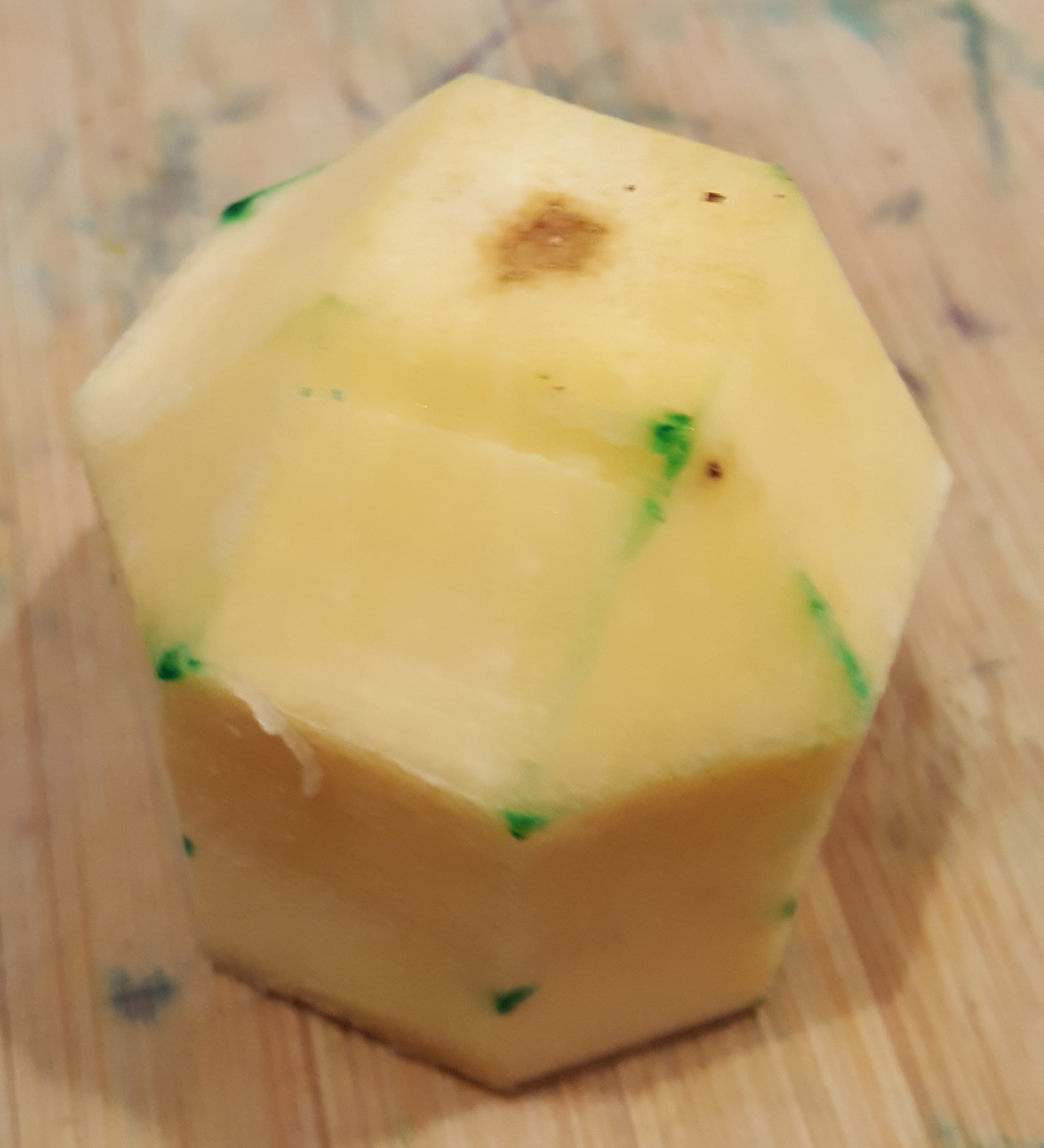 With the techniques from this series on polyhedral carving, you should have the wherewithal to try lots of different polyhedra out there with species of your choice. When you create something lovely (and maybe tasty, too!), share a photo with mondays@momath.org.
