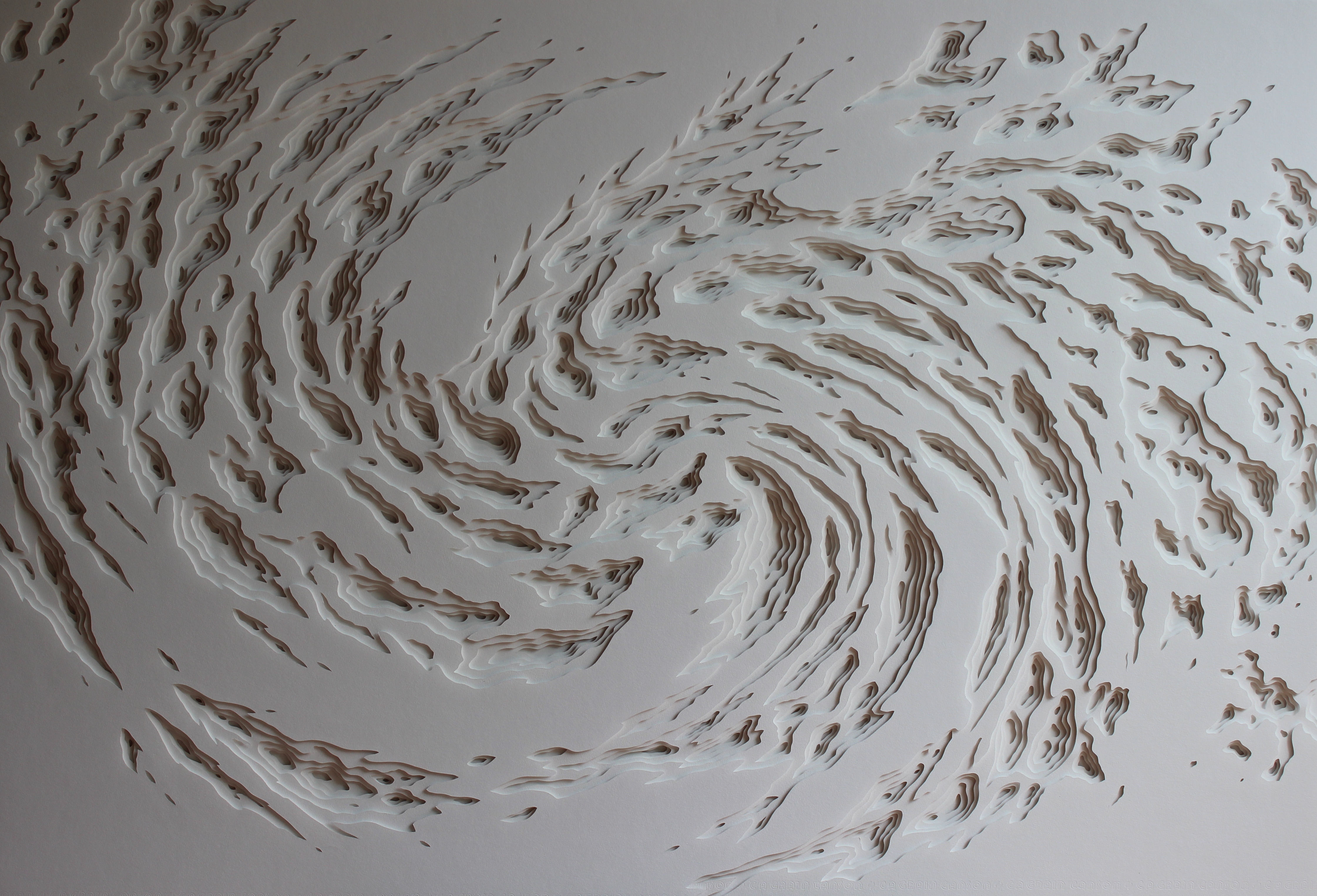 The time element the 48-year-old artist is referring to is the four to five months it takes to make the sculptures using his Epilog laser cutter. Brown prefers to use paper as his primary medium because “it’s a humble material, everyone can access it … I use a populist technique that allows the public to access something that might be beyond their comprehension.”