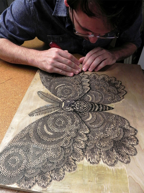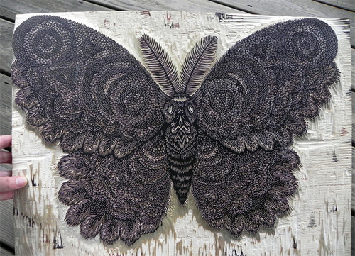 As traditional printmaking processes go woodcuts are some of the more arduous, which just makes the amount of ornate detail in this magnificent new moth woodcut from Tugboat Printshop that much more impressive.