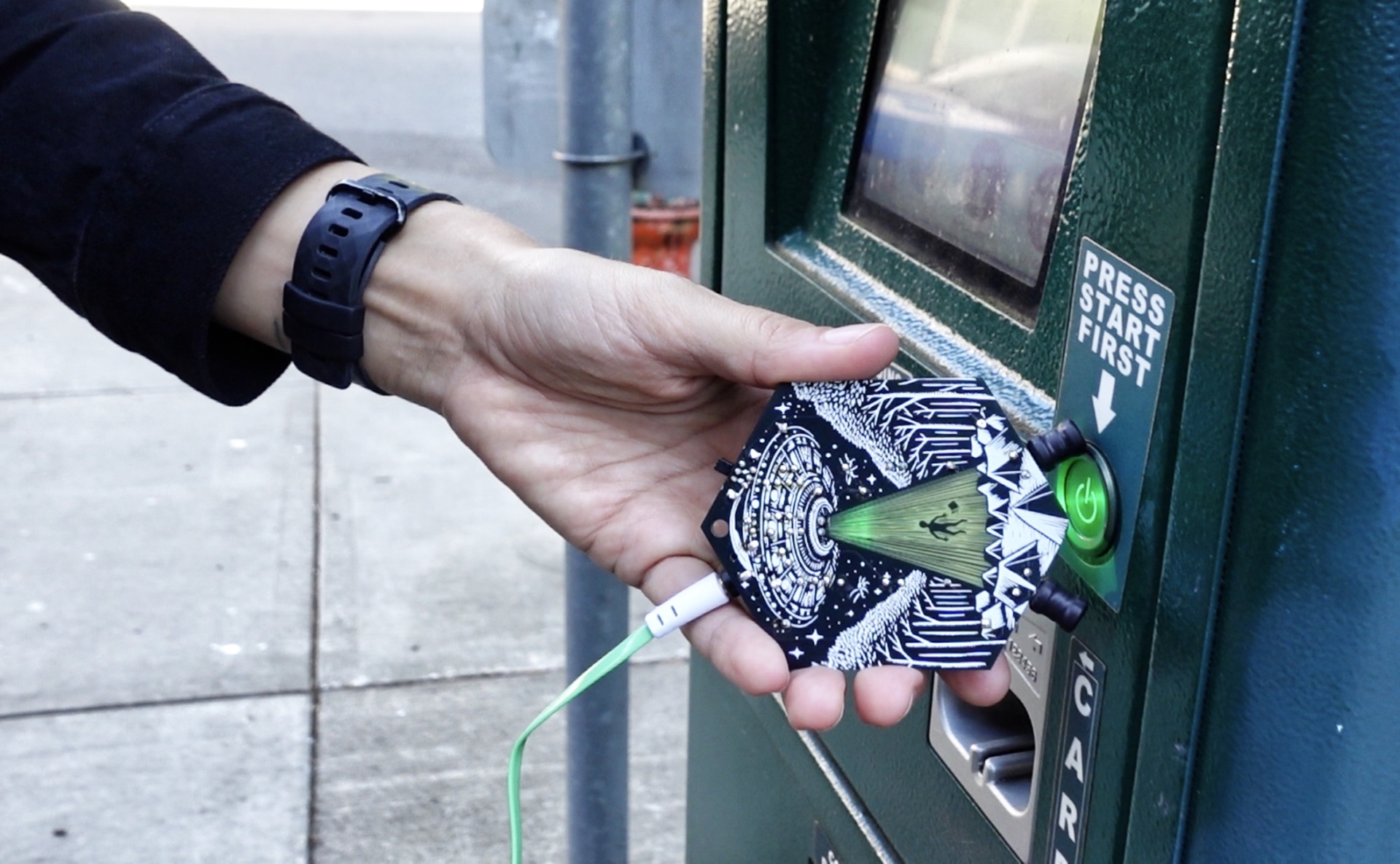 The EMF Explorer Badge is an electromagnetic frequency sensing circuit that lets you listen to the world of hidden electromagnetic frequencies around you, designed by Portland-based audio hacker Darcy Neal. The EMF Explorer Badge is a beginner-friendly soldering kit with a beautiful PCB and a lanyard so you can illuminate yourself at night, ready to sniff out hidden EMF signals with the use of headphones or external speaker.