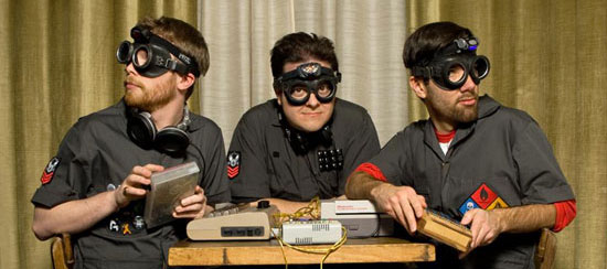 Justin Emerson, Brett Marshall Lefferts, and Thom Uliasz are out to shatter the mystery of electronic music making. The trio perform, run workshops and make and modify electronic instruments under the name Burnkit2600.