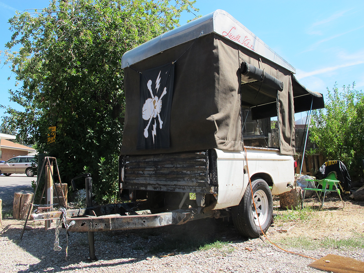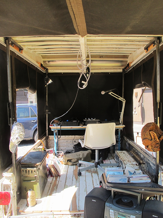 Currently Josh is on The “Lucille Valentine” tour. From August 13 – December 31, 2016 his ongoing radio performance Bomb Shelter Radio hits the road for a five month tour of the United States, bringing his radio performance to various towns and cities across the country. The “Lucille Valentine” is a mobile radio station trailer built out of a 1978 Chevy LUV pickup. The 2016 tour will be dedicated to the victims of the bombings of Nagasaki, and the cultural implications of that act. Josh aims to create sonic landscapes by mixing and reorganizing sonic detritus of eras past with contemporary sounds. Through the ongoing/ traveling radio broadcast performance he aims to uncover new ways of understanding at our cultural history post WWII.