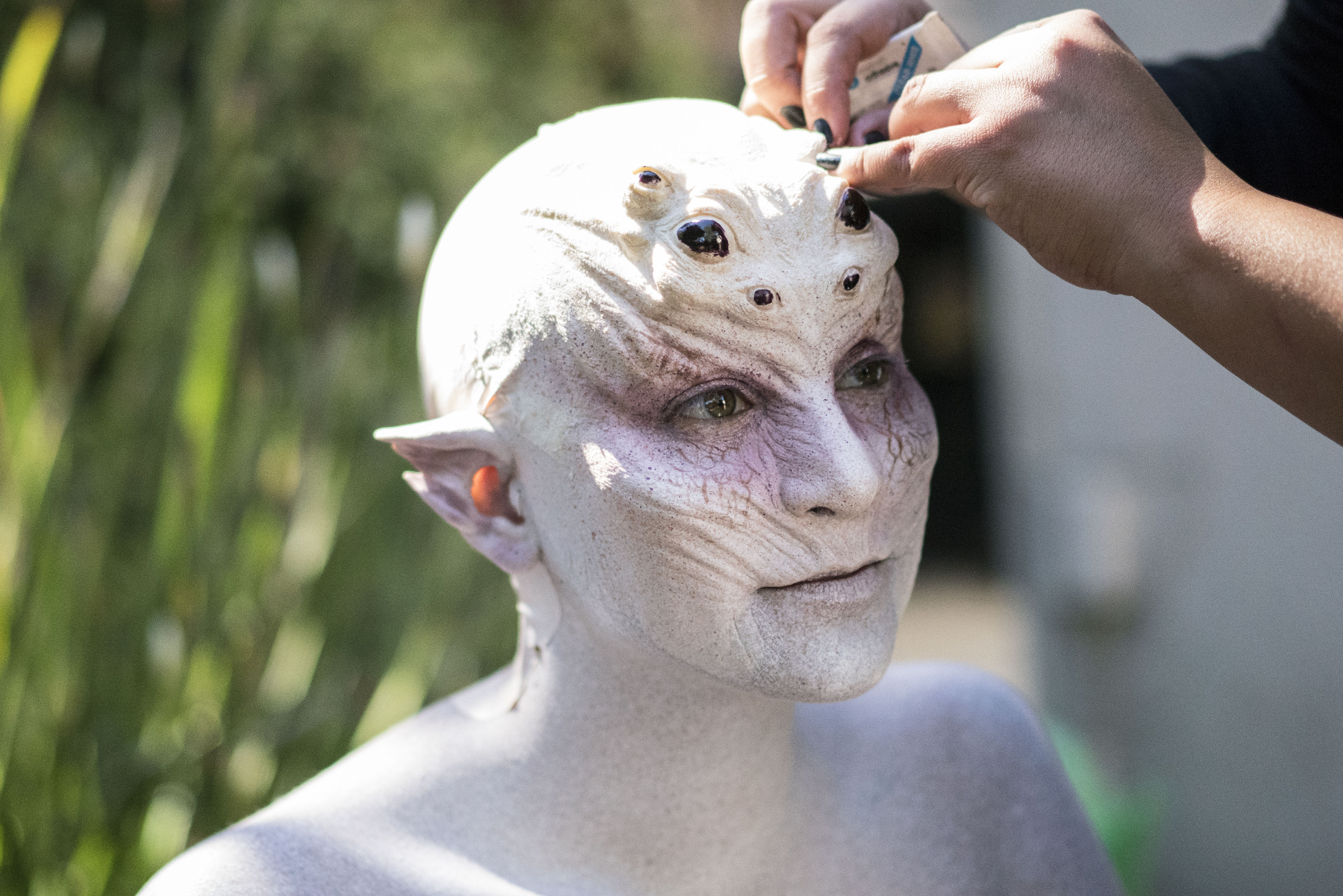 Caragan wanted to combine her prosthetic forehead with a facial prosthetic from RBFX, designed by Miranda Jory. “I felt that since [Ragosta] loved vertical lines, I wanted him to see this and use it. He loved it. So from there, the design evolved to become more transformational, which of course brings me great joy.”