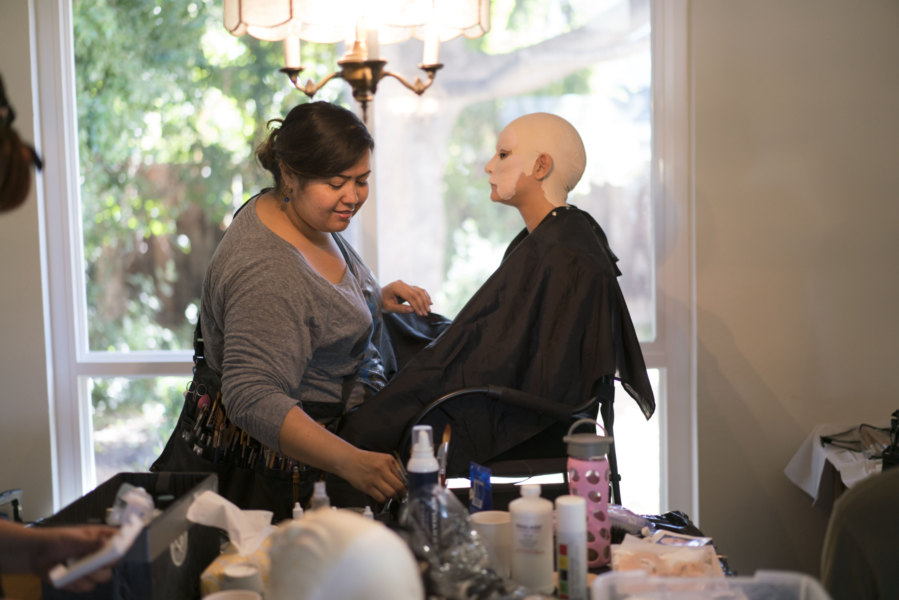 With just one day allotted for special makeup effects, it was essential for the entire team to be on point from the moment we got to set. Ragosta began to shoot what he could without Diana, and Caragan set each artist to a task. “I was buzzing on coffee, confidence, and passion. From the moment the team started rolling in, I was like a magnet, sharing with each member what I needed from them and rolling the makeup forward as fast as possible,” she says.