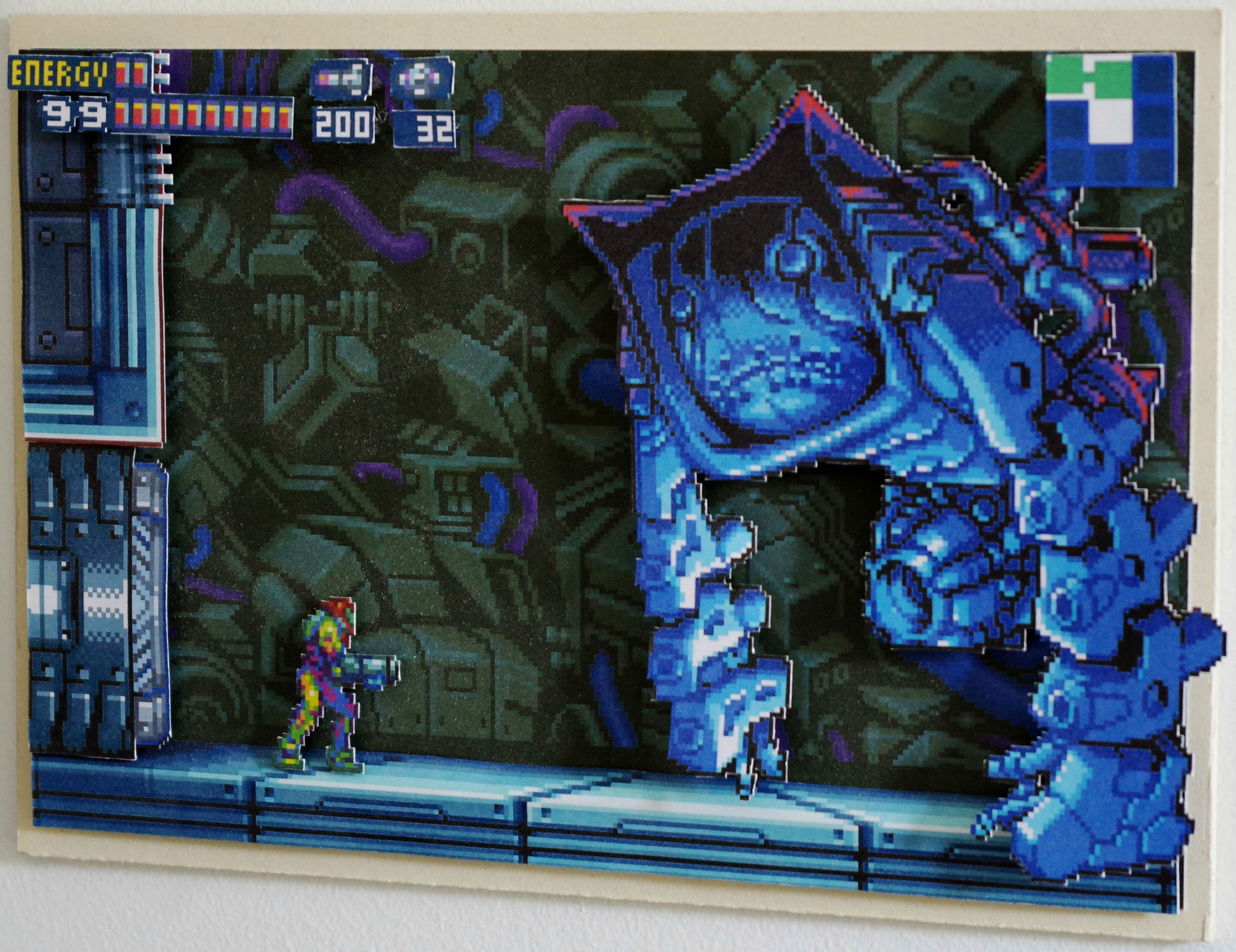 Older pixelated video games can be fun to play, but there is a certain artistic style to 8- and 16-bit games that can be quite eye-catching. 18-year-old French architecture student, Pierre Laurent, decided to let the art from his favorite Gameboy Advance game, Metroid Fusion, stand on its own in a three-dimensional cutout display.