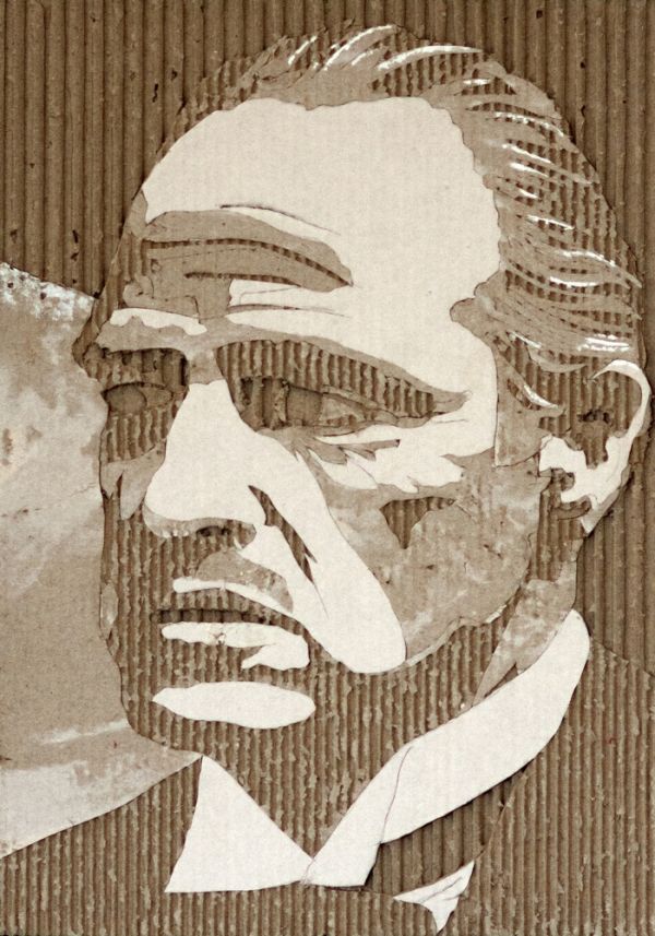Artist Giles Oldershaw makes iconic portraits of celebrities from nothing but pieces of cardboard by simply carving into them and peeling the layers away.