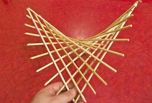 But what shape would the template take? The starting point was a skewer parabolic hyperboloid which happened to be sitting in the office of Ben Levitt, MoMath’s chief of education, much like this one from Mathcraft, which has also been featured in a previous Math Monday: