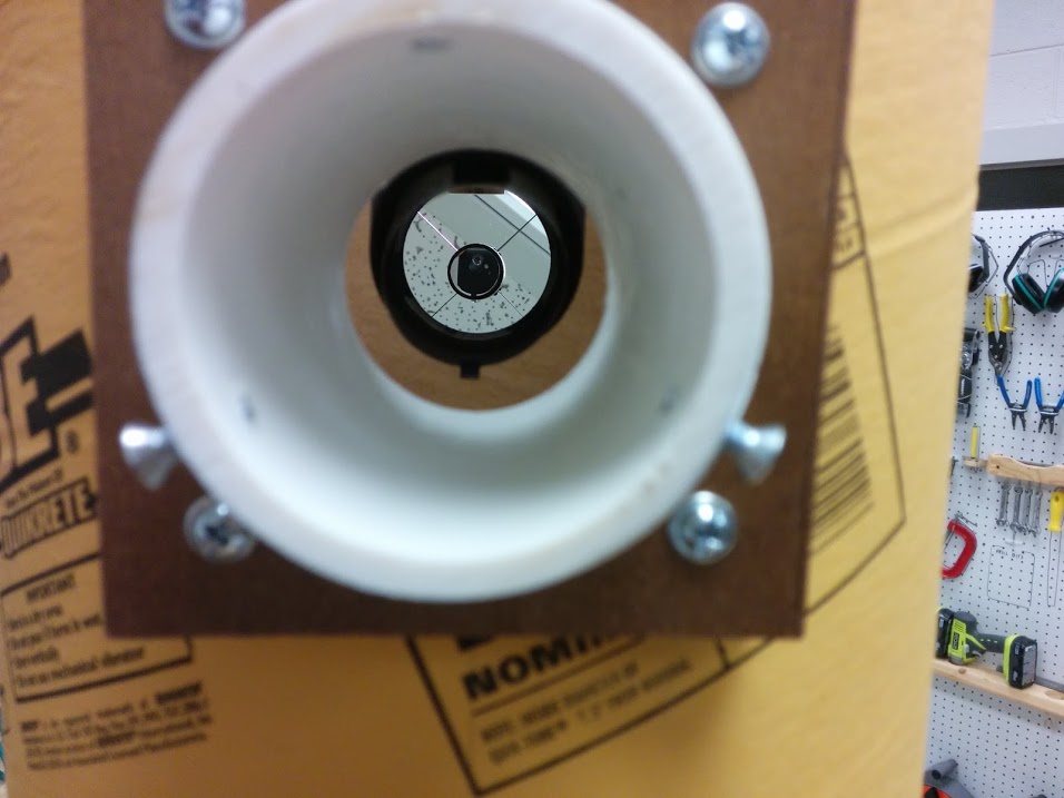One might not believe that a telescope made from cardboard tube could capture any detail from the sky, but, as seen in the moon photograph below, this isn’t the case. This was made possible by aligning the optics, a process called “collimation.” Per Patton’s writeup, “This involved orienting the secondary mirror so that it is centered over the primary, and adjusting the angles of both mirrors so that the reflected image goes straight into the eyepiece.”