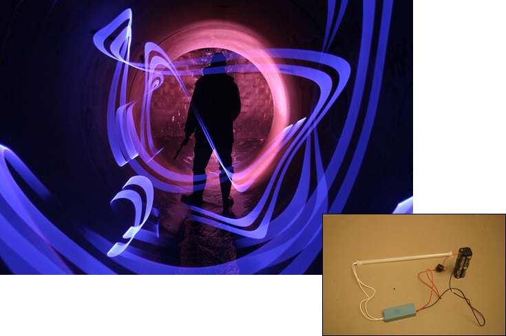 Dana Maltby has hacked cold cathode tubes — the neon light’s cheaper, safer younger brother — to be battery operated for light-painting use. Building one just takes an 8XAA battery holder, a switch, and some simple tools. Swipe, slash, or wave it in the air to create colorful bands of light.