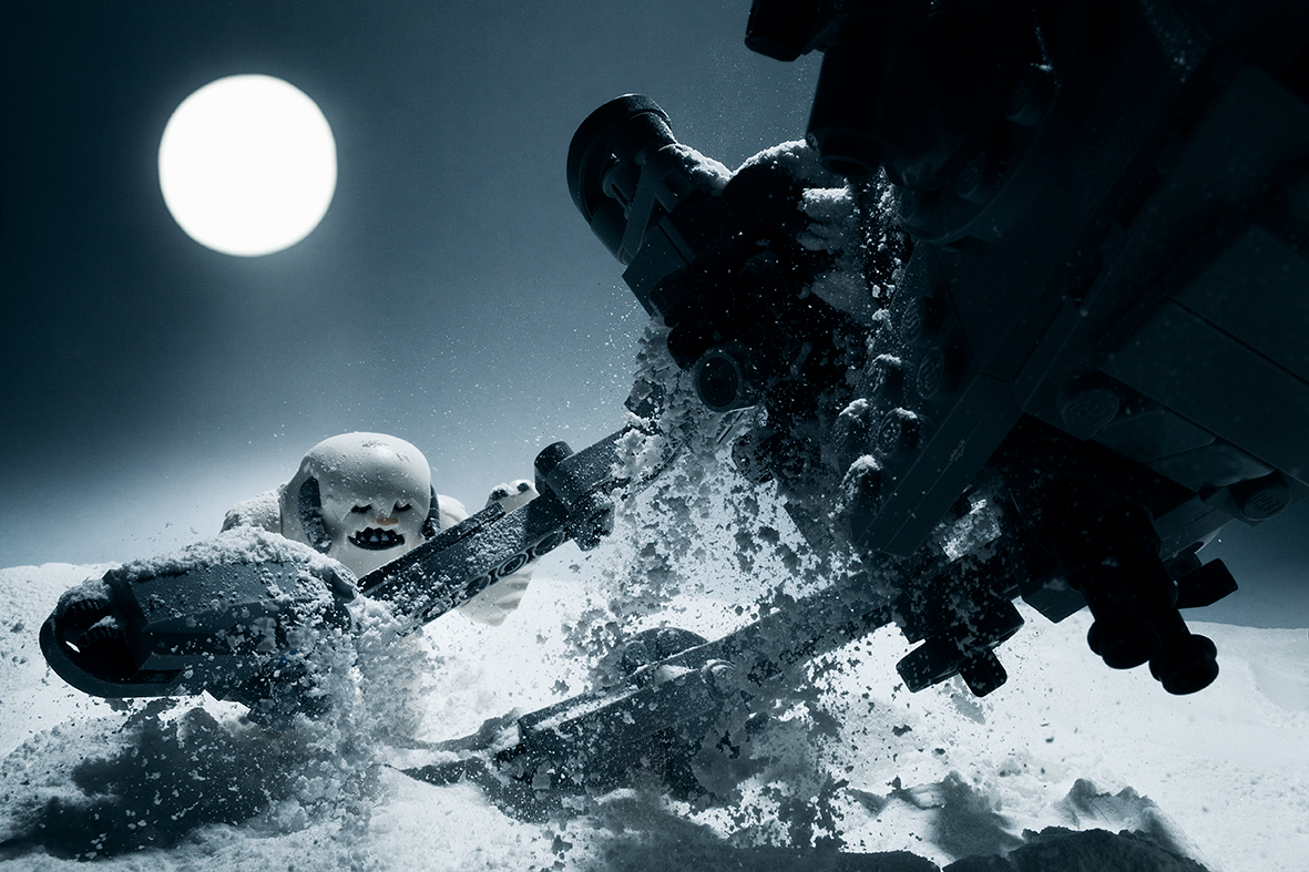There are lots of people doing Legoography these days. What sets Avanaut’s work apart is his effective use of atmosphere — smoke, sunlight, snow crystals, and other environmental elements are all brought into play to create a very realistic, immersive mood to each captured scene. He has even coined a term, “forced atmospheric perspective,” to describe the method in which he works.