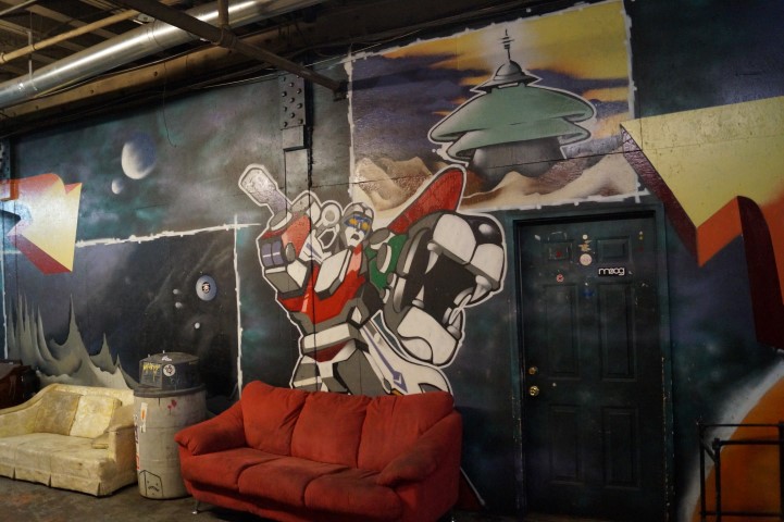 Reinventing the typewriter was the goal of this project. The construction was incredible looking. All of us on the location kept coming over to see how this radial typewriter head on steroids was going to perform. Unfortunately, there was some kind of technical difficulty so we never really got to type on the walls.
