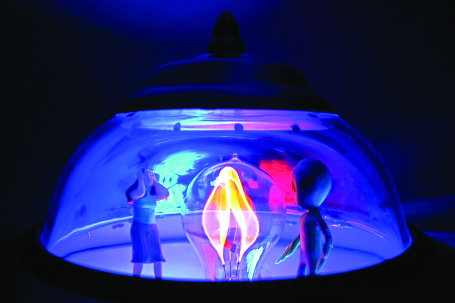 Jason Dietz’ UFO Lamps stand 6 feet tall and each feature an alien abduction.