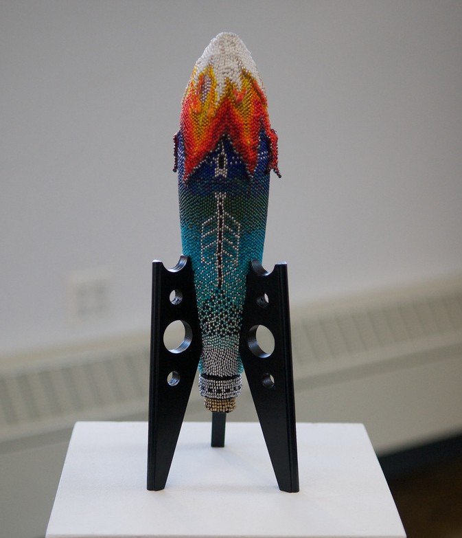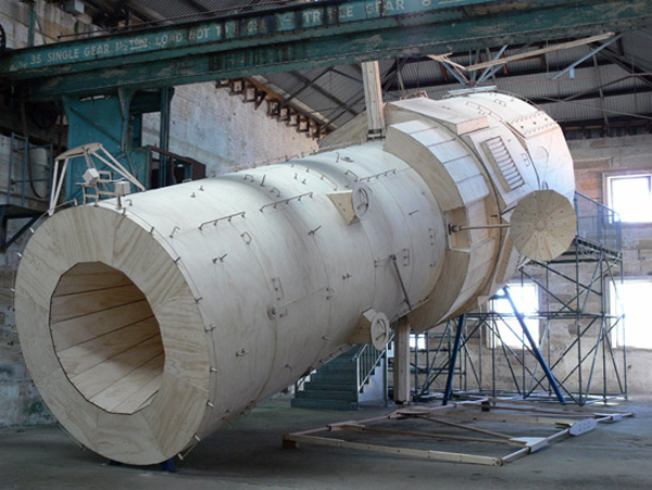 The wonders of the universe have long inspired humans to create art in homage. Whether the medium be welded metal or precision-cut plywood or crocheted yarn, makers are creatively showing their love of space, planets, space travel, and beyond. Pictured above and below is the fantastical 41-foot Raygun Gothic Rocketship, by talented Oakland, Calif.-based art collective Five Ton Crane. While the rocket itself doesn’t soar, the imaginations of all who lay eyes on it do. It features three full decks inside, the interior design is aesthetically based on science fiction from the 1930s to the early 1950s, and the attention to detail is astounding.