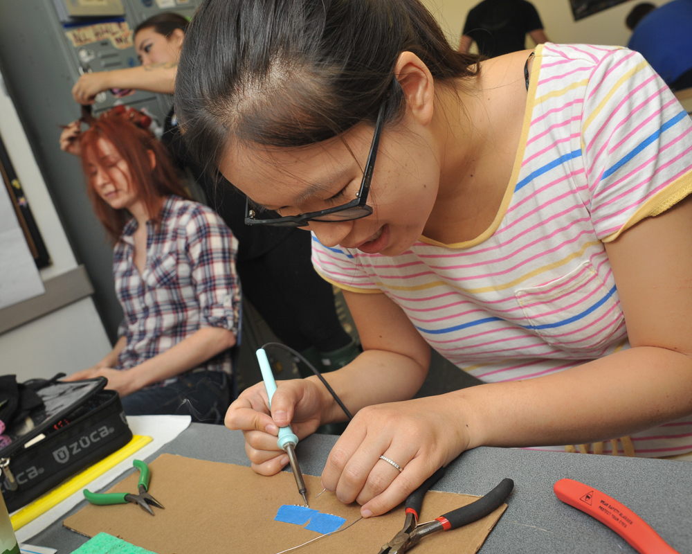 When we first cooked up the idea of doing something special for this year’s Makey Awards, we knew there was one woman for the job: MAKE contributor Diana Eng (fashion designer, tech wearables expert, and Project Runway alum). When I first spoke to Diana on the phone, I gave her lots of specifics about what we were looking to do (“ummm…something… awesome!”), and ever the consummate professional, she took it from there.
