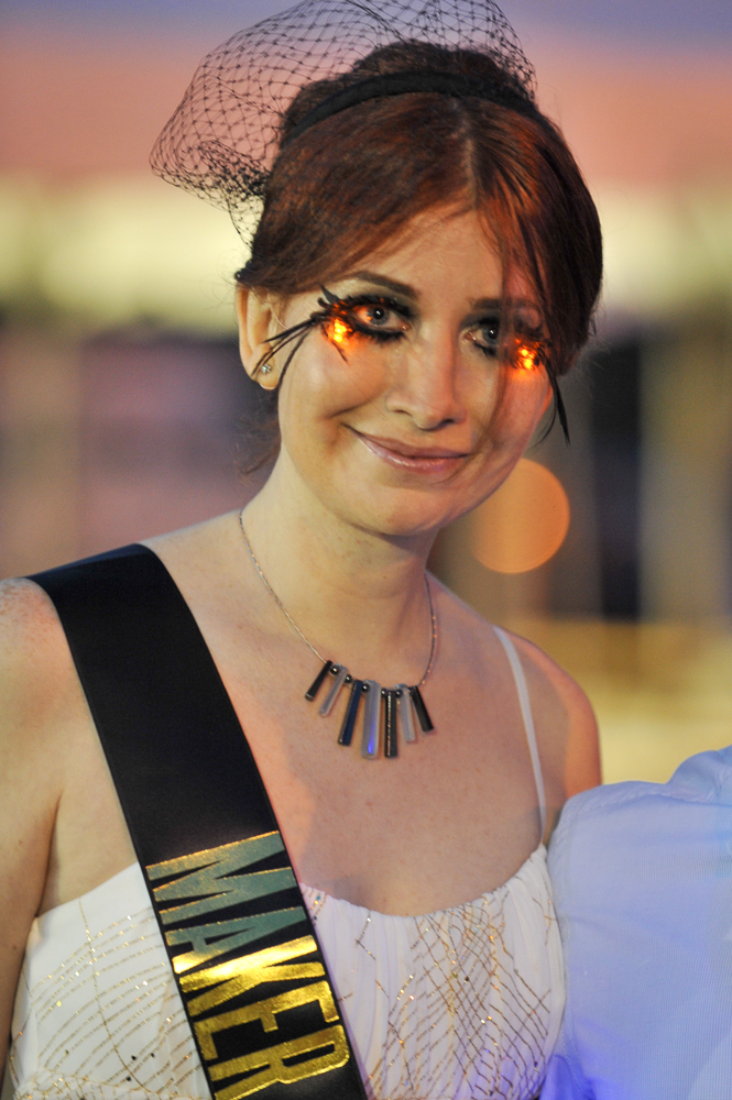 When we first cooked up the idea of doing something special for this year’s Makey Awards, we knew there was one woman for the job: MAKE contributor Diana Eng (fashion designer, tech wearables expert, and Project Runway alum). When I first spoke to Diana on the phone, I gave her lots of specifics about what we were looking to do (“ummm…something… awesome!”), and ever the consummate professional, she took it from there.